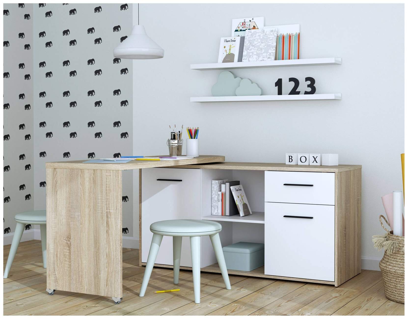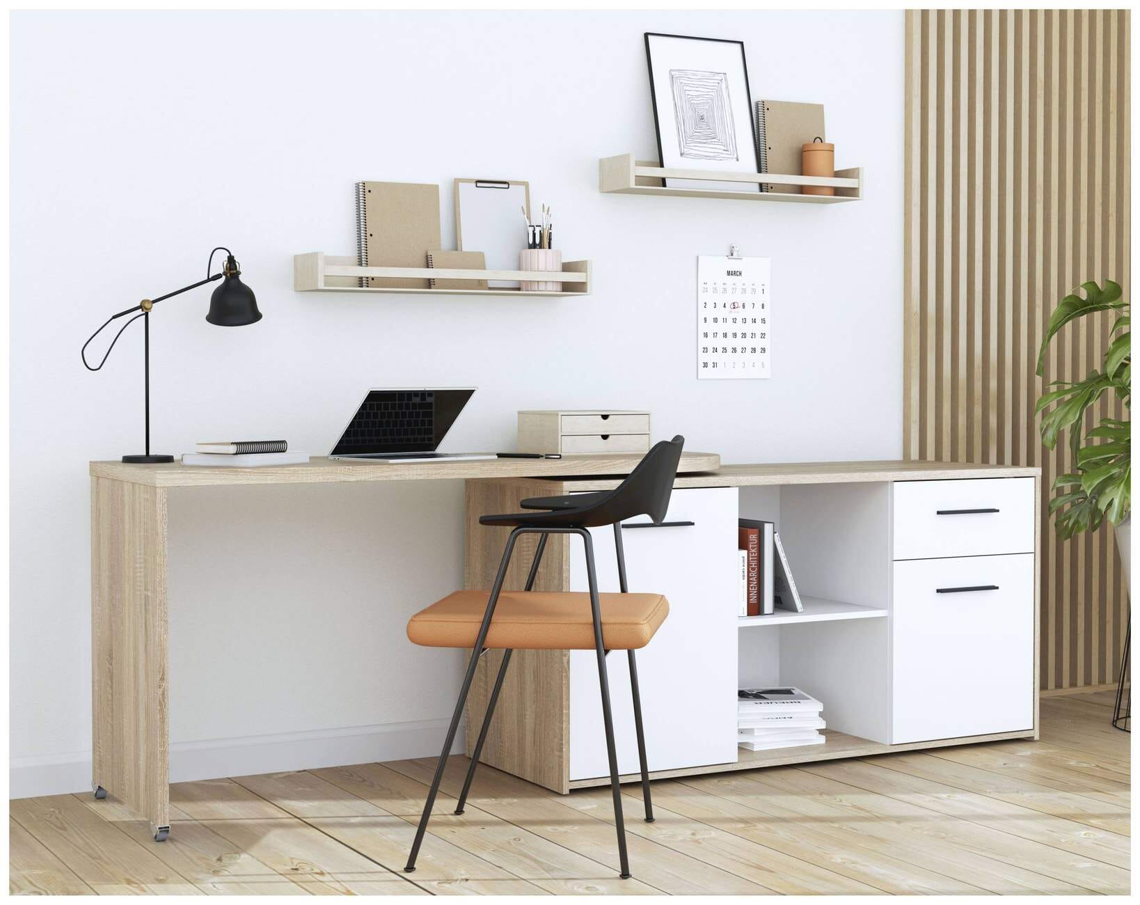 Arbeitstisch Schreibtisch ALIKLIA Optik: Sonoma Eiche und Weiß, Forte