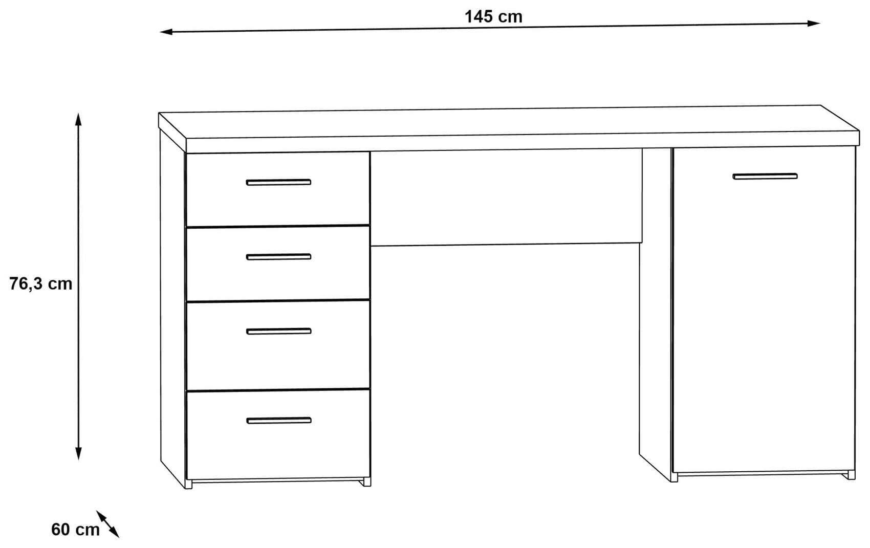 - Maße: B/H/T 145 x 76,3 x 60 cm
