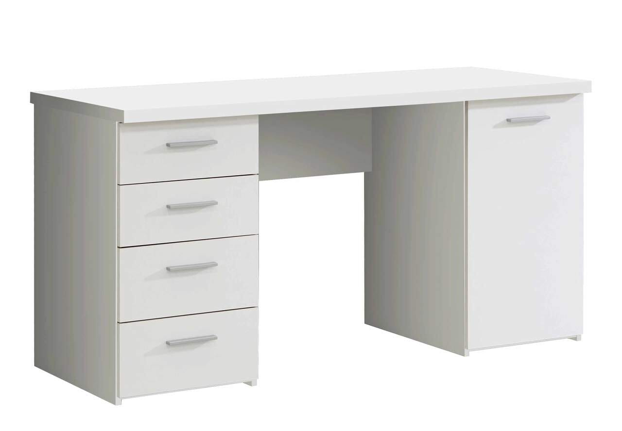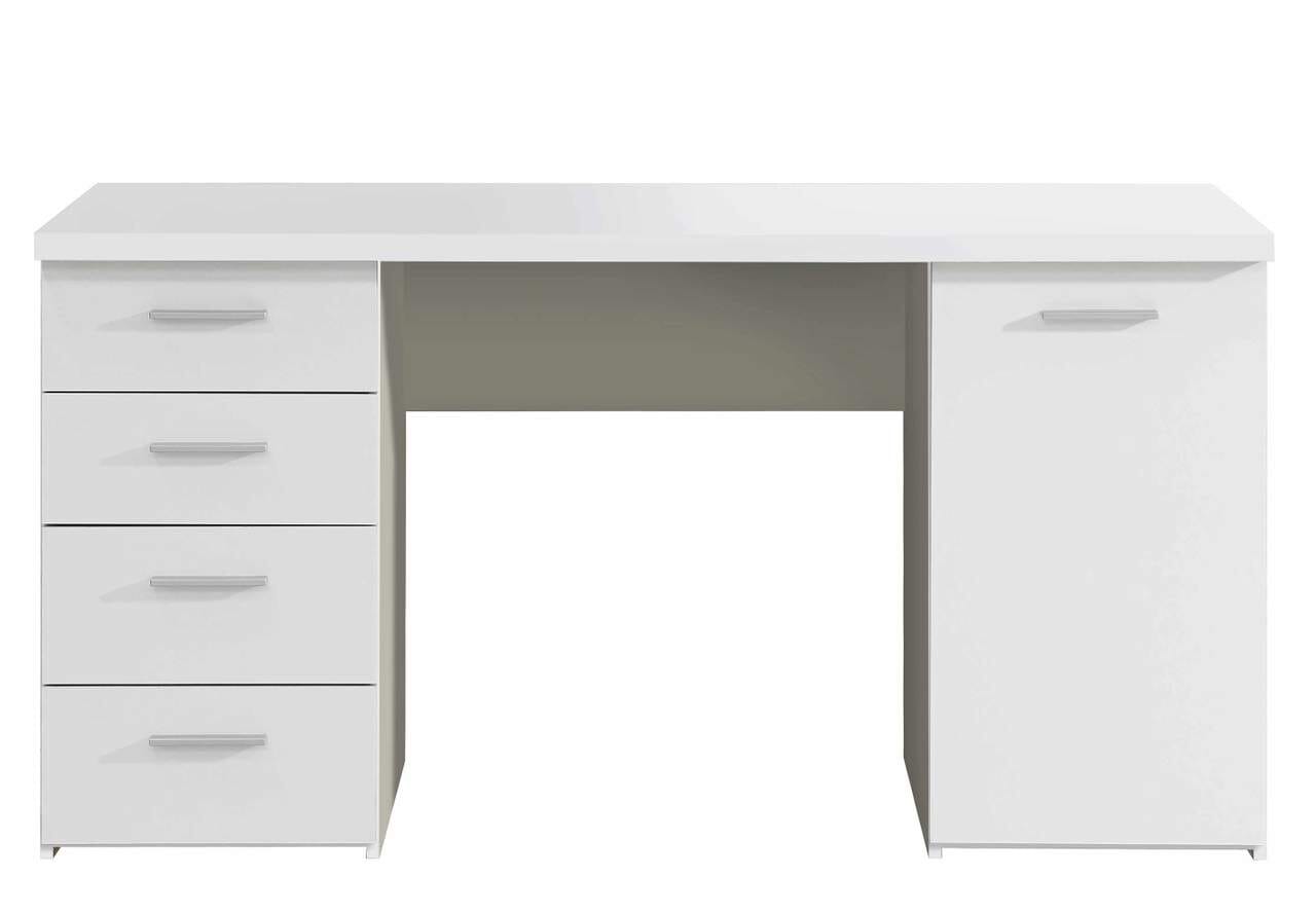 Arbeitstisch Schreibtisch NETBOB 1-trg 4 Schubladen, Weiß matt, Forte