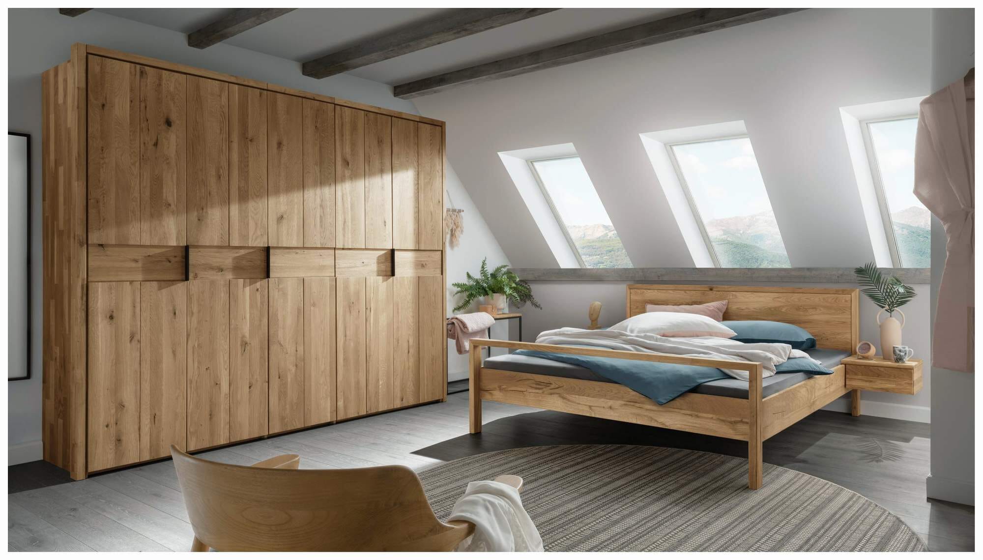 Mit dem Massivholzbett AAGE schaffen Sie eine gemütliche Oase der Entspannung in Ihrem Schlafzimmer. Das dekorative Möbelstück aus massiver Wildeiche begeistert durch seine einzigartige Maserung und das natürliche Wuchsbild des Holzes.