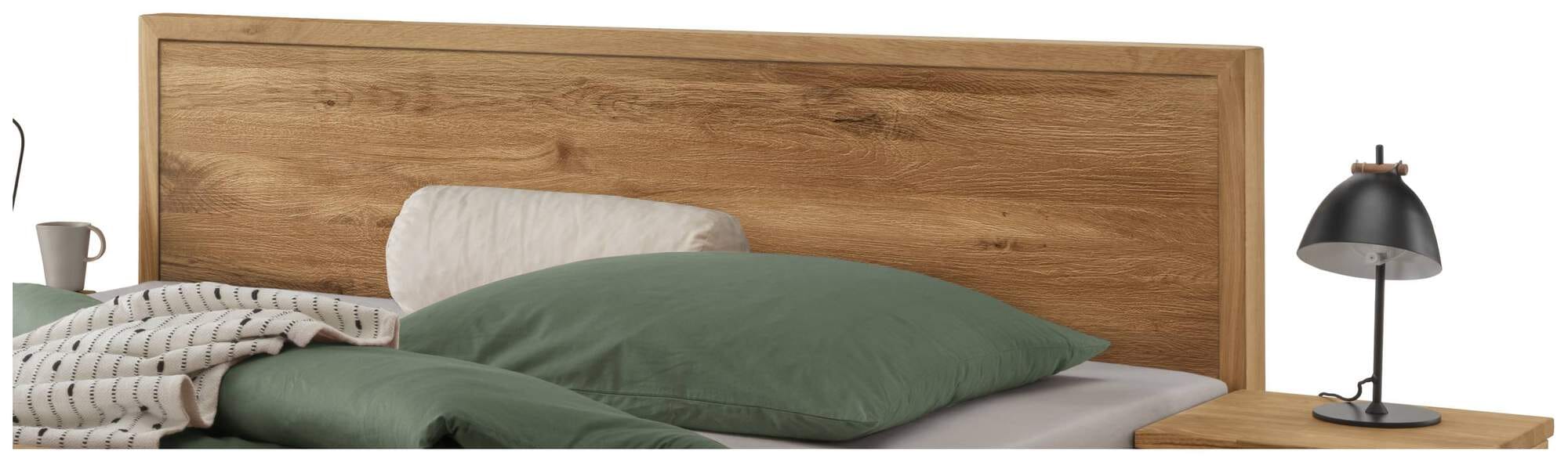 Massivholzbett AAGE 1, Wildeiche massiv geölt, Kopfteil gebürstet