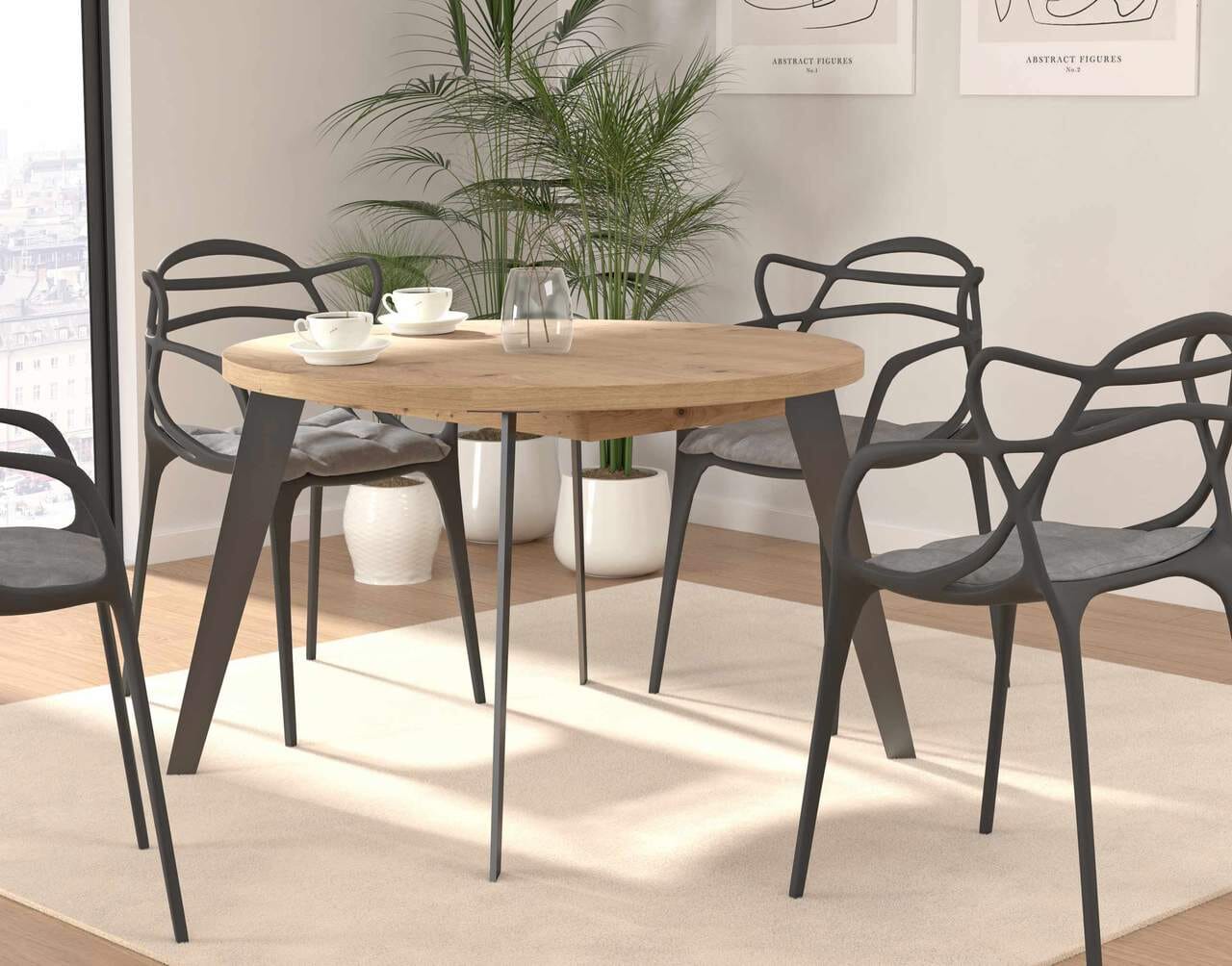 Ausziehtisch Esstisch TABLE ROUND Optik: Artisan Eiche, Beine schwarz