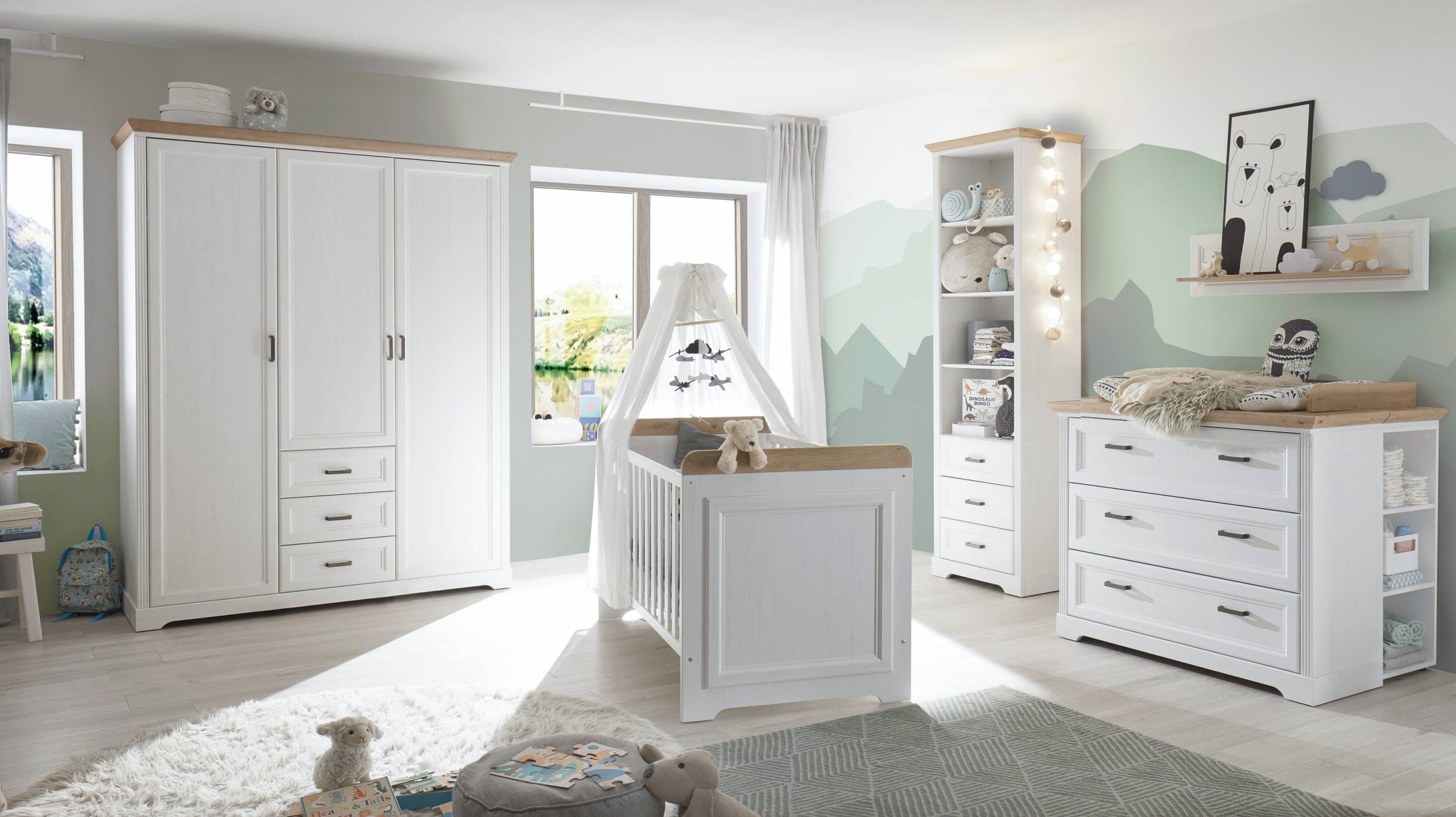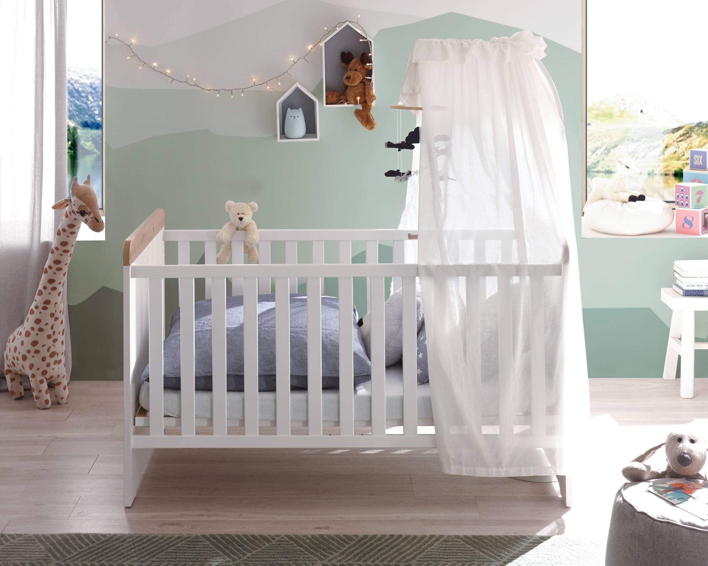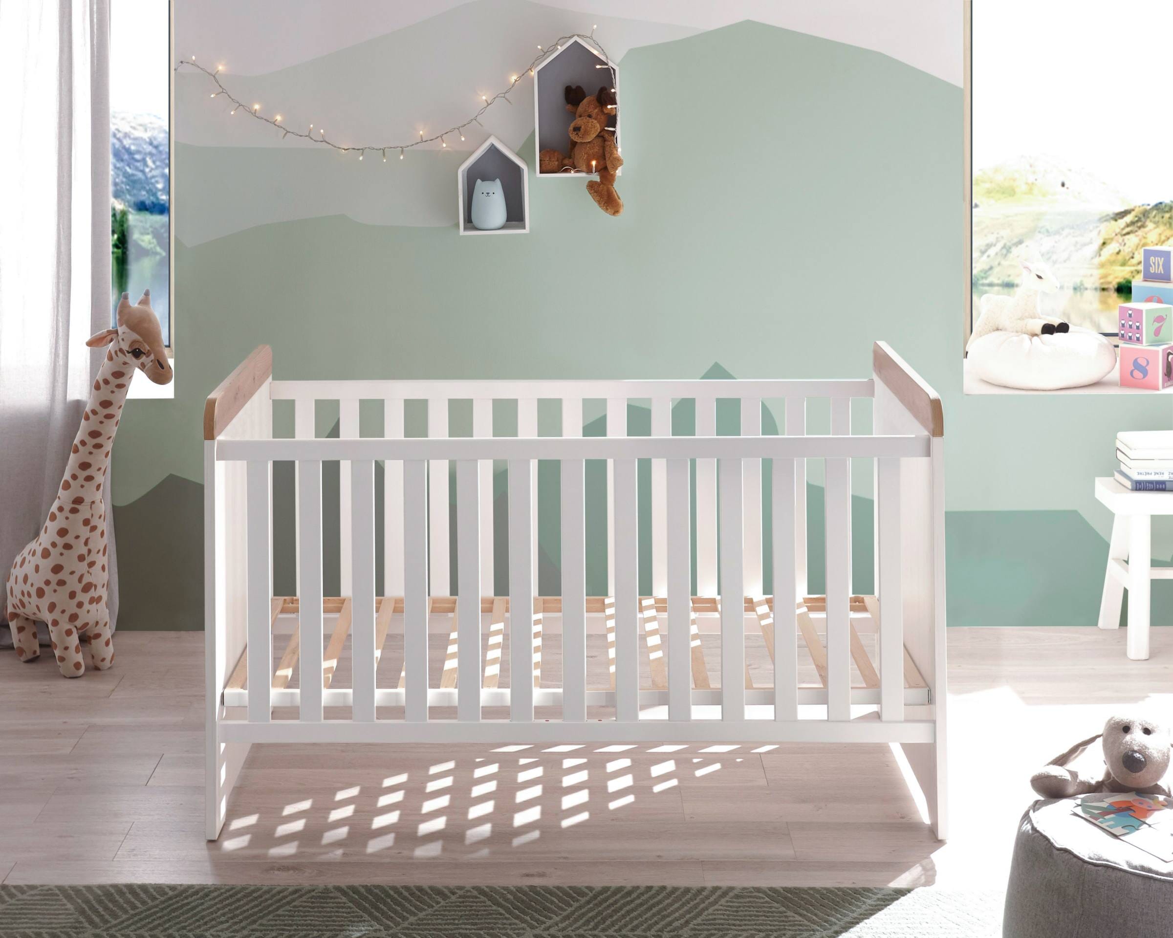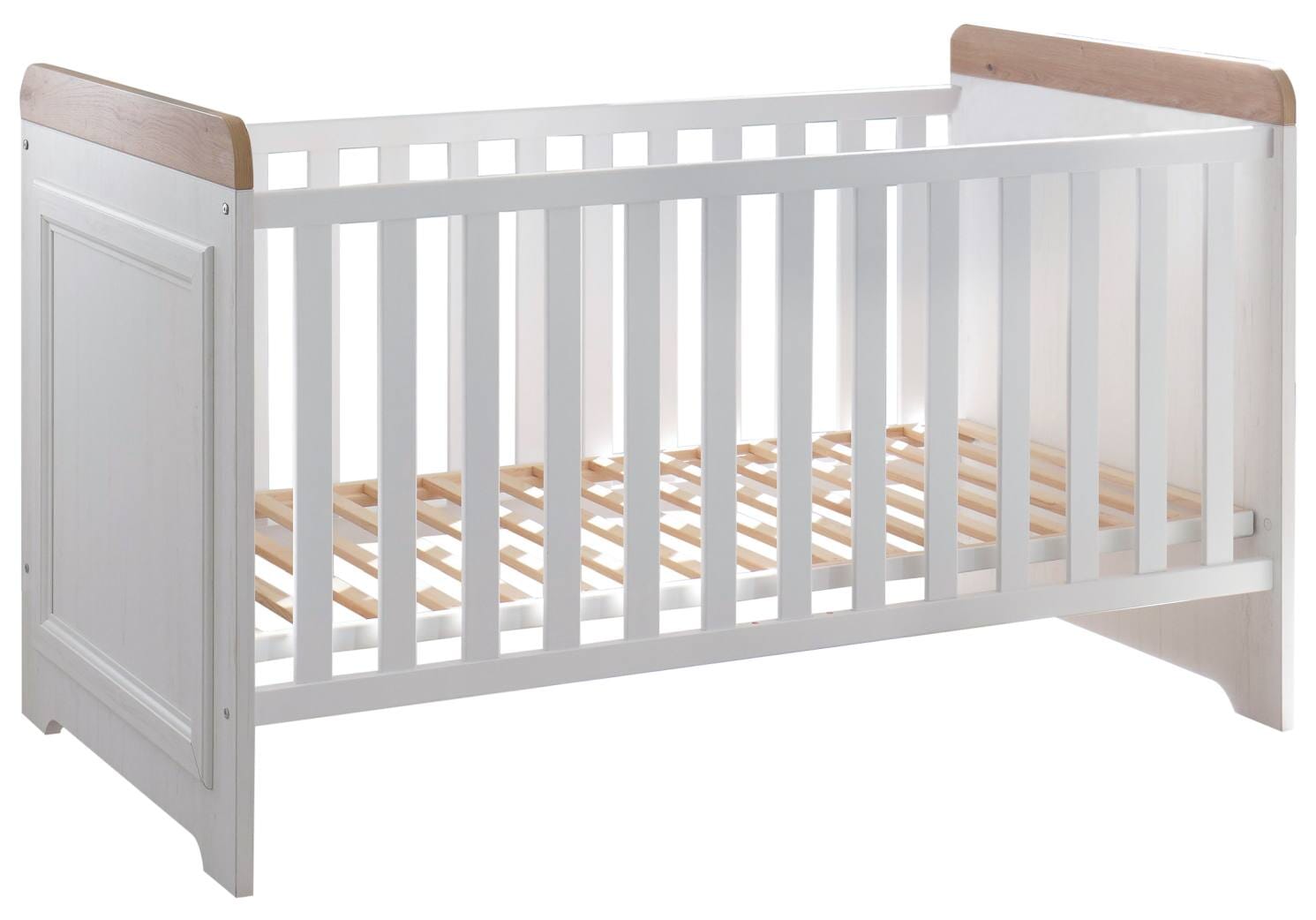 Babybett Jasmin in Pinie Weiß mit Artisan Eiche kombiniert
