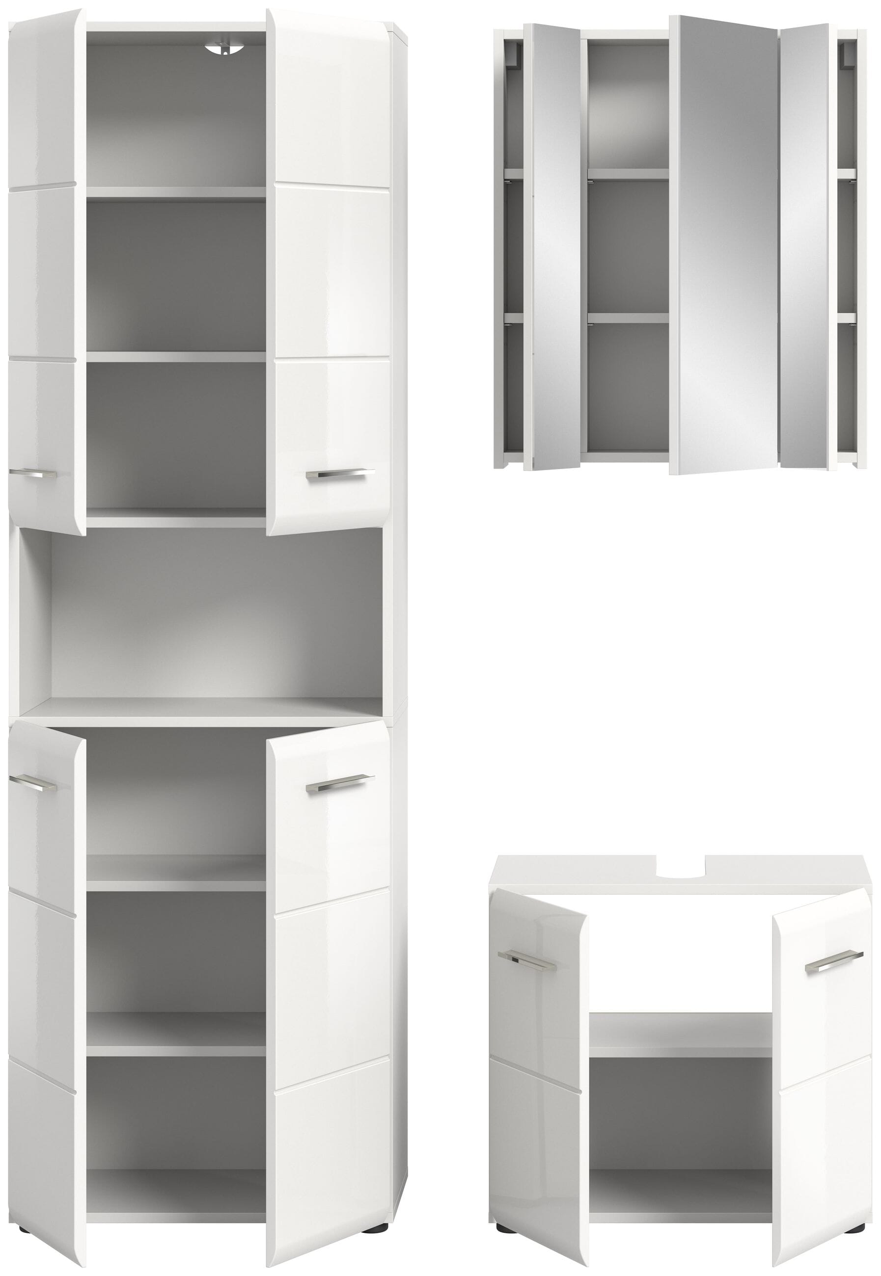 Badkombination Weiß Hochglanz, 135x190x32 cm, inkl. Spiegelschrank