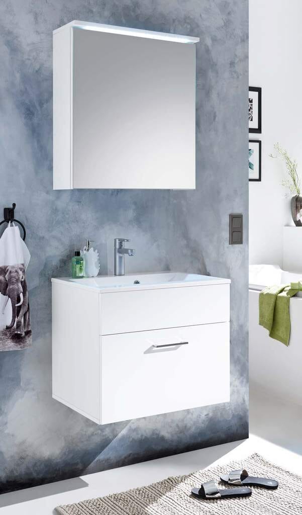 Waschplatz SPLASH 60 weiß, Kompaktes Badmöbel-Set für Ihr Gäste-WC. Und ganz nebenbei schaffen Sie für die Gäste mit diesem weißen freundlichen Set ein edles Ambiente selbst im kleinsten Bad.