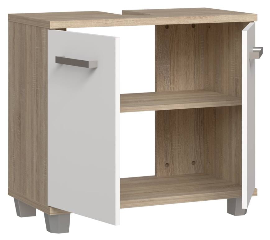 Badezimmermöbel Set VERIS 1, 5-tlg. Set, Sonoma Eiche / Front Weiß Hochglanz