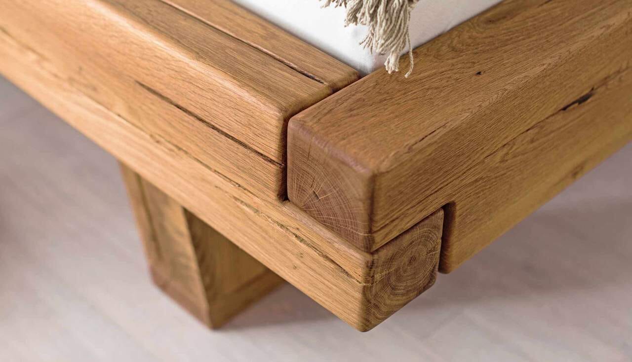 Balkenbett GORM aus rissiger Wildeiche