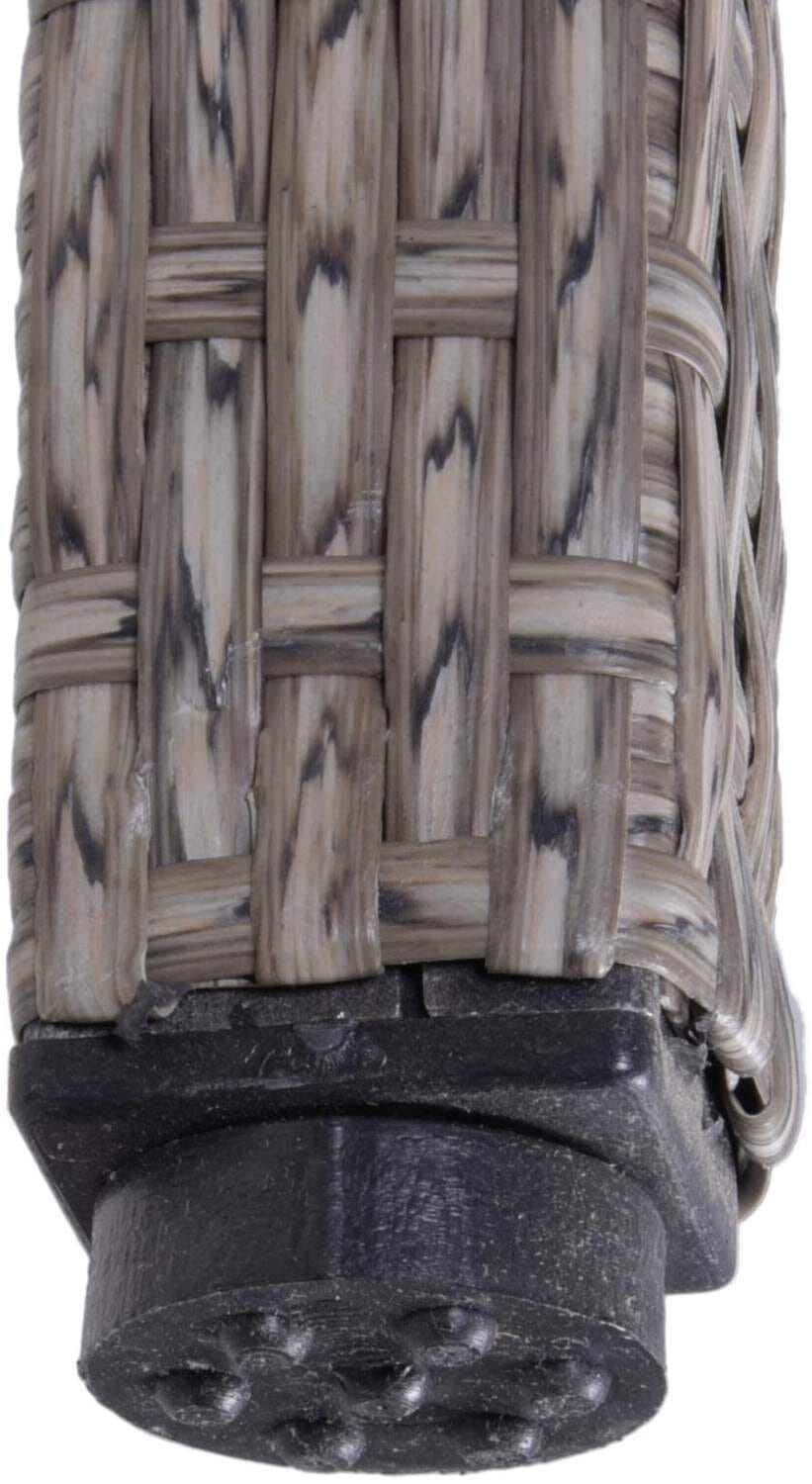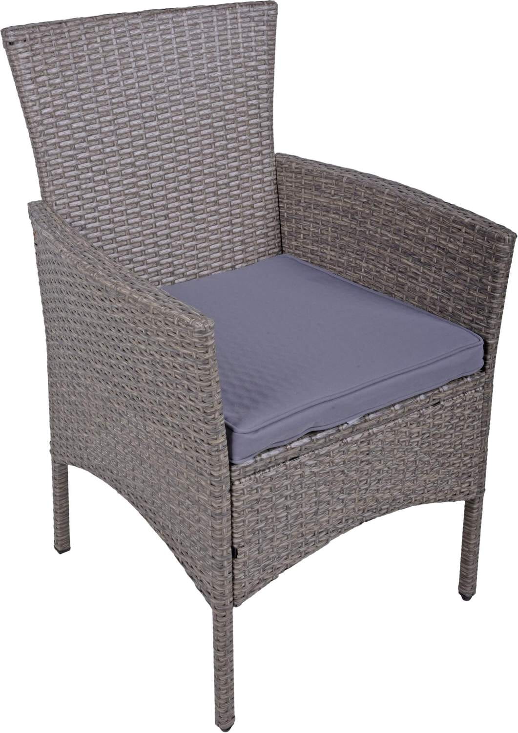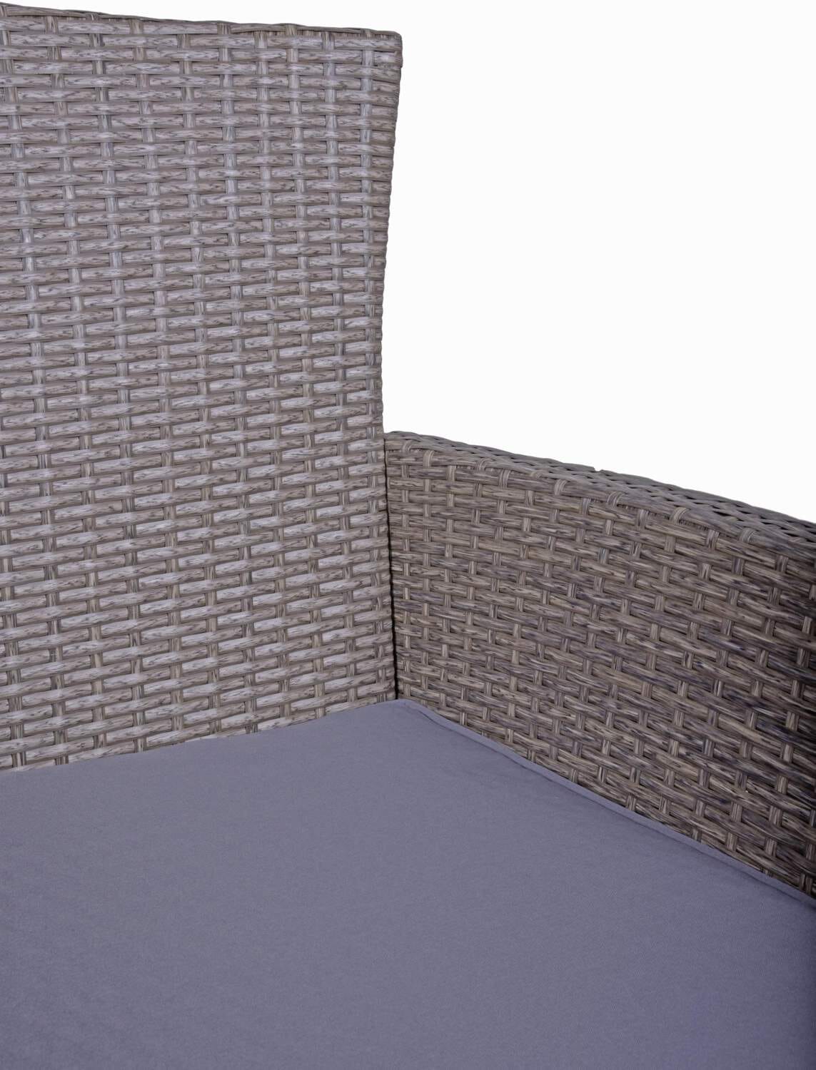 Die beiden Sessel sind aus grauem Kunststoffgeflecht gefertigt und bieten eine bequeme Sitzgelegenheit. Sie sind robust und wetterbeständig und eignen sich daher perfekt für den Einsatz im Freien. Das Kunststoffgeflecht ist widerstandsfähig und pflegeleicht und lässt sich leicht mit einem feuchten Tuch reinigen.