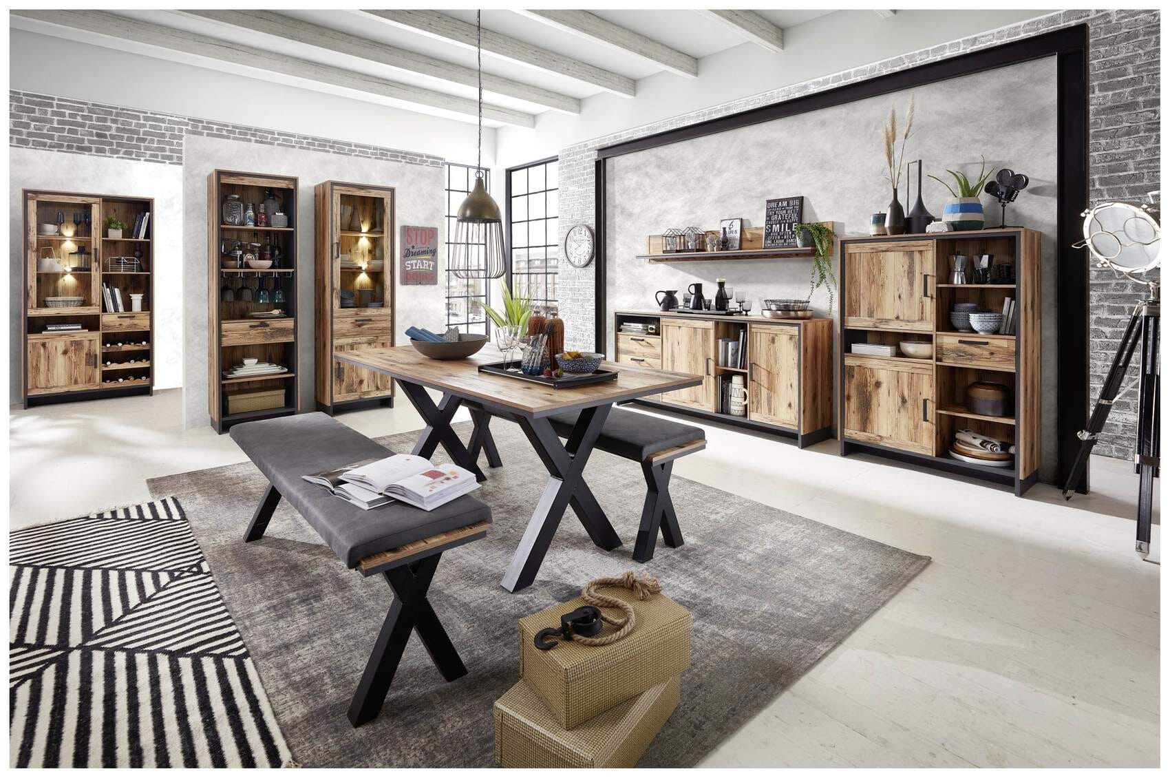 Bank Esszimmerbank PRATO 166 cm Oldwood Alpine Lodge und Graphit Dekor inkl. Kissen