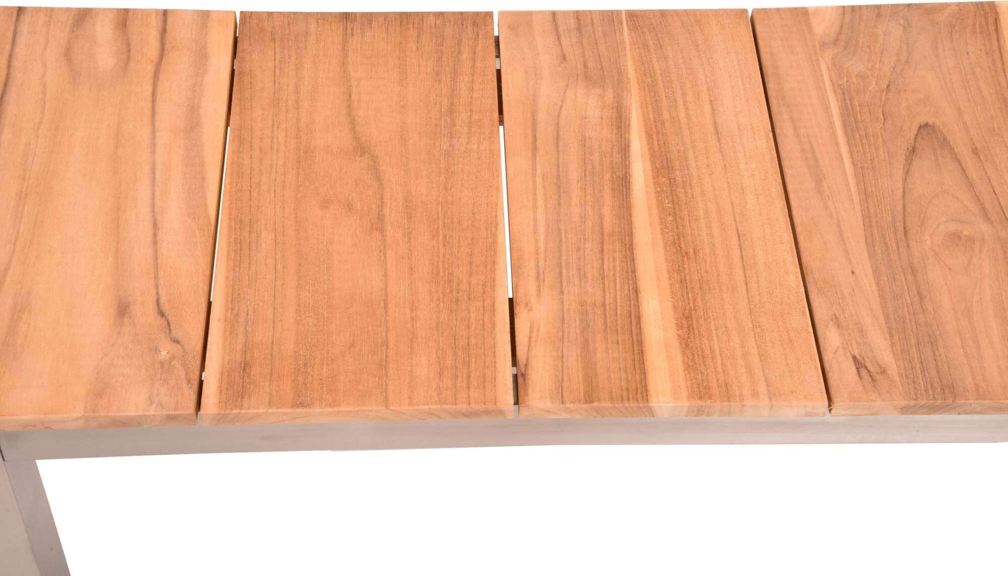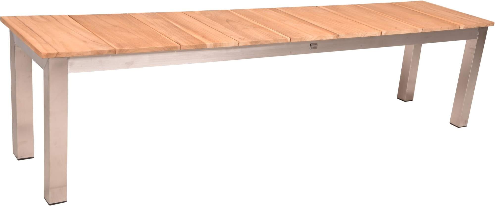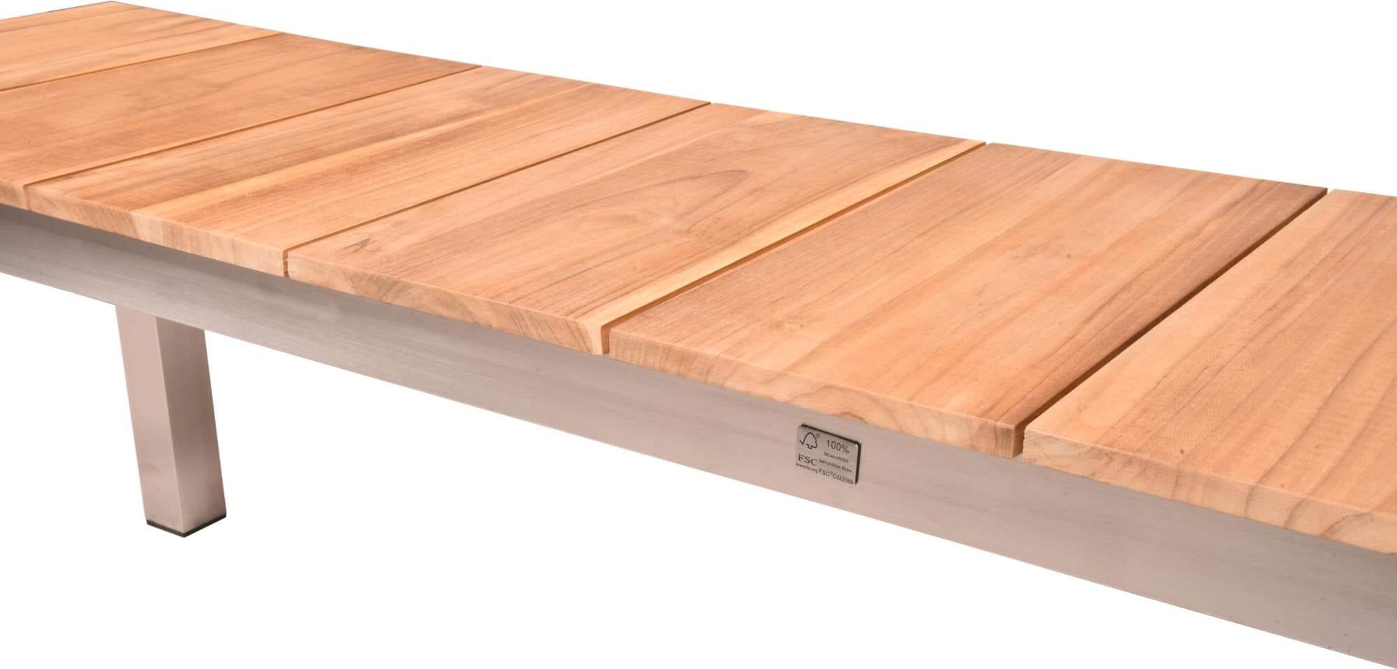 Die Bank DALLAS hat ein Edelstahl-Gestell (gebürstet) und einer Sitzfläche aus Teak-Holz (geölt). Die Sitzbank bietet einen guten Sitzkomfort und eine hochwertige Qualität. Das verwendete Holz kommt aus einer nachhaltigen Forstwirtschaft.Durch die hochwertige Verarbeitung und das langlebige Material ist die Bank bestens für den Outdoor-Bereich geeignet.