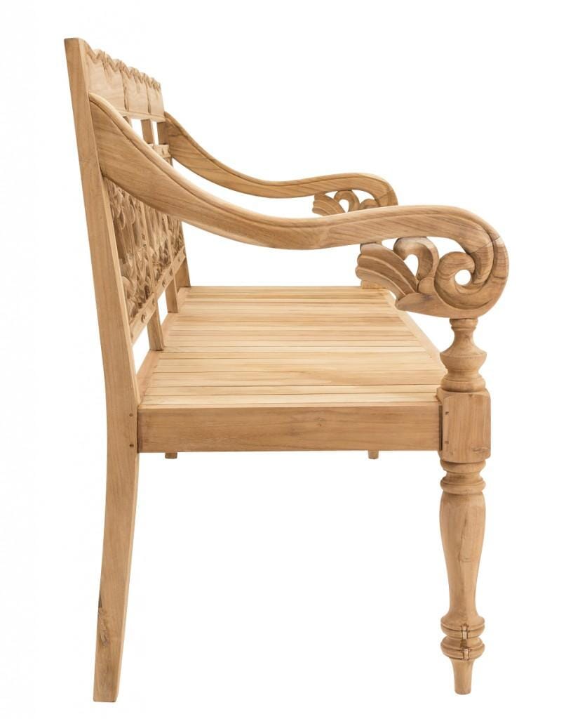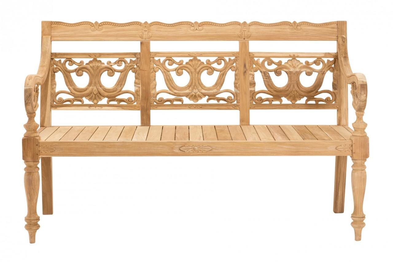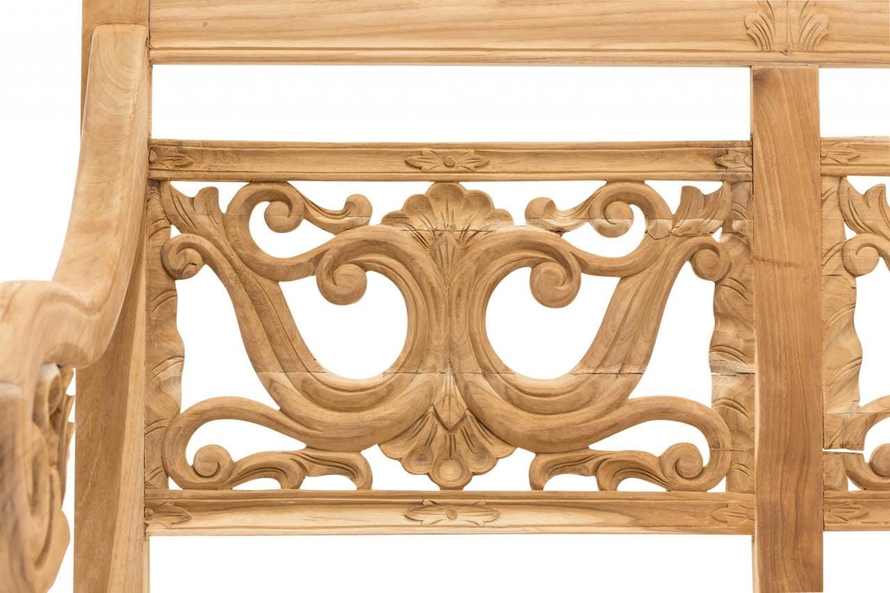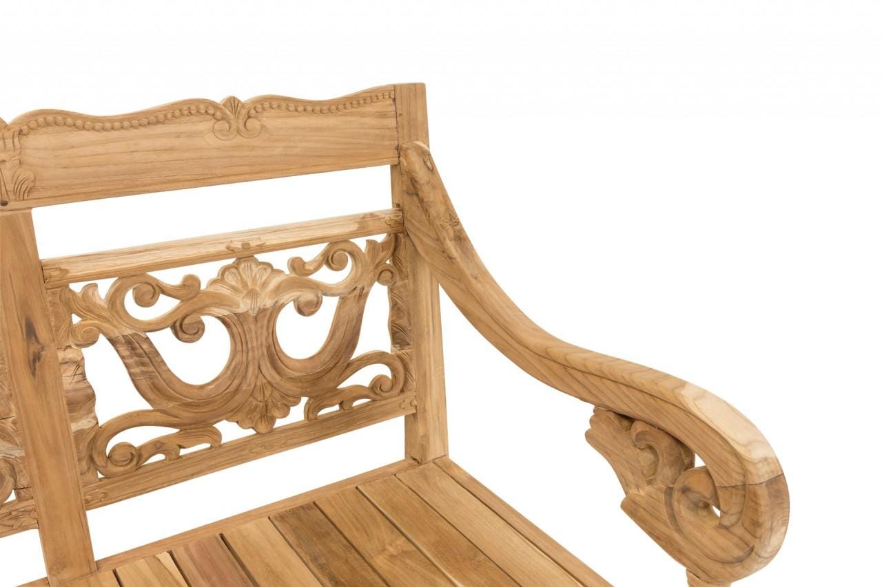 Bank Teakbank INTAGLIO 150 massive Gartenbank, geschnitzte Rückenlehne