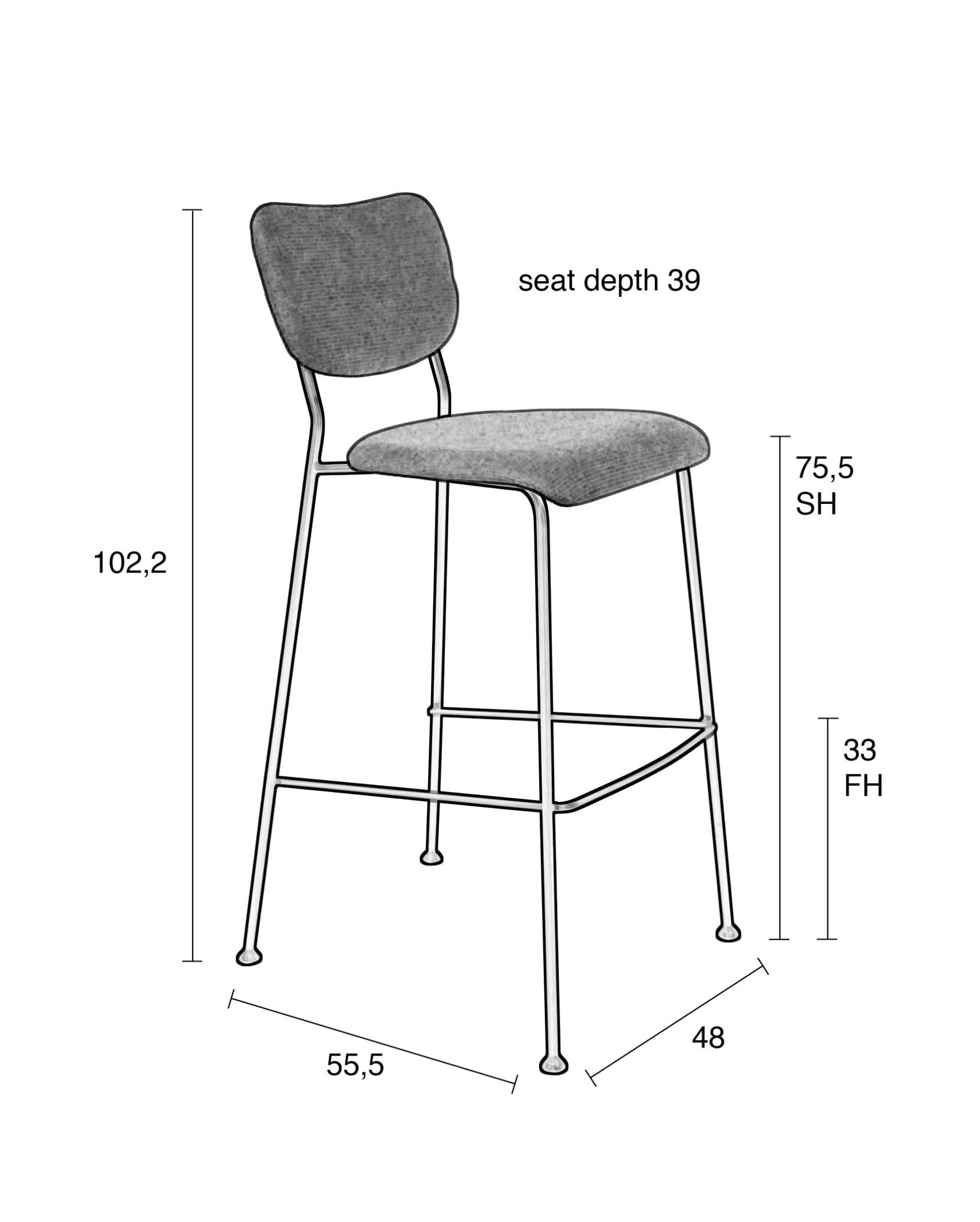 Mit dem neuen Barhocker BENSON von Zuiver kommt Farbe in Ihren Barbereich. Den Barhocker gibt es in 5 tollen Trendfarben und stylischen Cordbezug der auch noch angenehm weich ist.