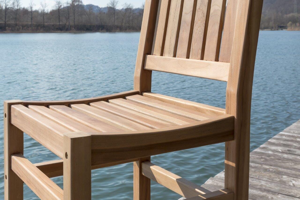 Woran das liegt? Es wird wohl am Material liegen; Teakholz hat es nun einmal, dieses Klassische, Zeitlose, man könnte sagen, Aristokratische. Auch wenn Sie den Stuhl nur auf Ihrer Terrasse nutzen, adelt er diese und erhebt Sie buchstäblich in lichte Höhen.