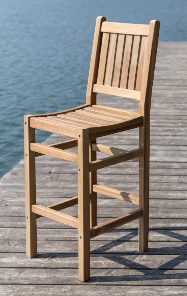 Der Barstuhl ist aus Teak gefertigt uns äußerst stabil durch Zapfenverbindungen und Verschraubungen mit Metallgewinde.