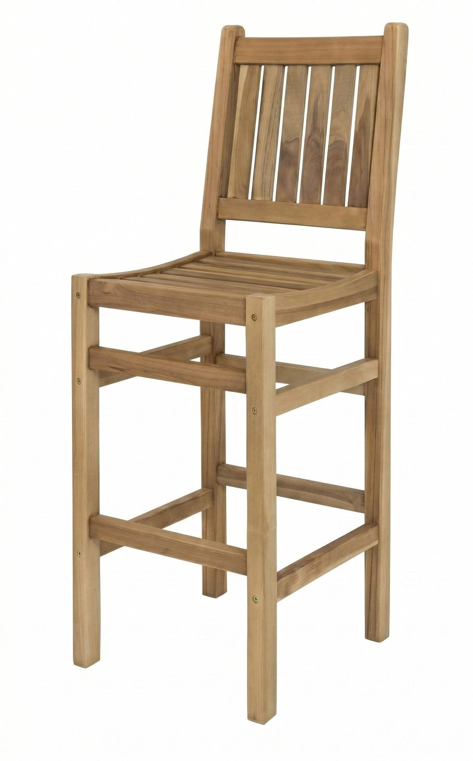 Der Barstuhl ist aus Teak gefertigt uns äußerst stabil durch Zapfenverbindungen und Verschraubungen mit Metallgewinde.
