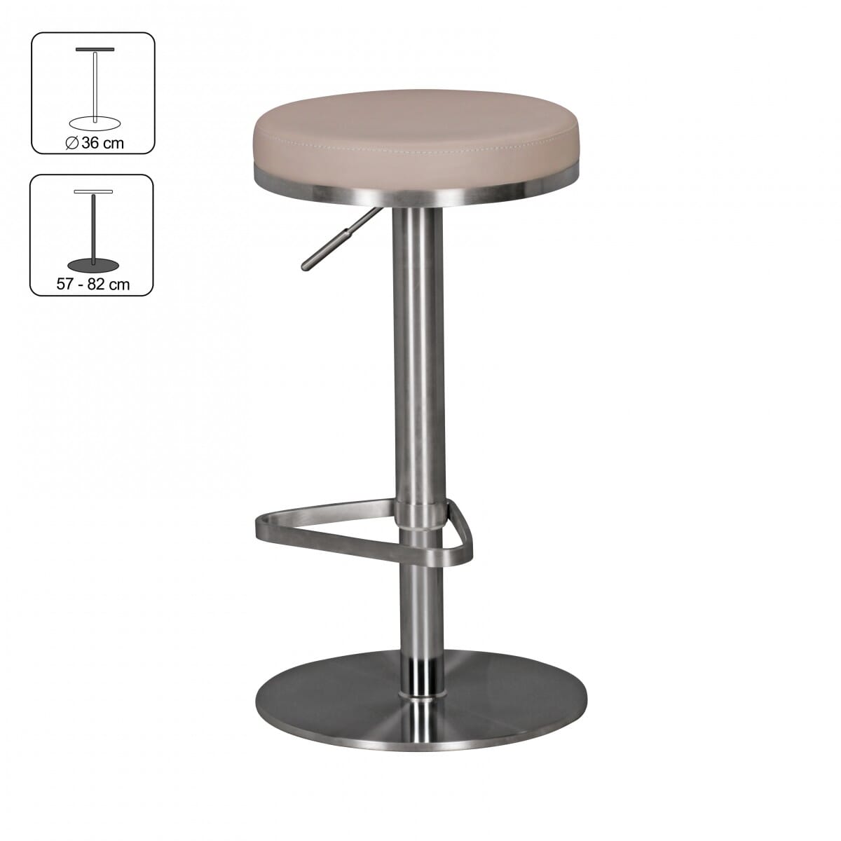 BarhockerWL1.942 Sitz Kunstleder Taupe - Gestell Edelstahl verstellbare Sitzhöhe 360° drehbar
