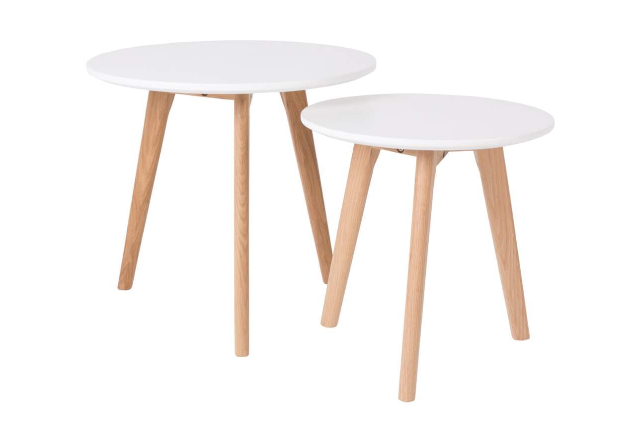 BODINE Beistelltisch 2er Set Beine Eiche, Platte weiß