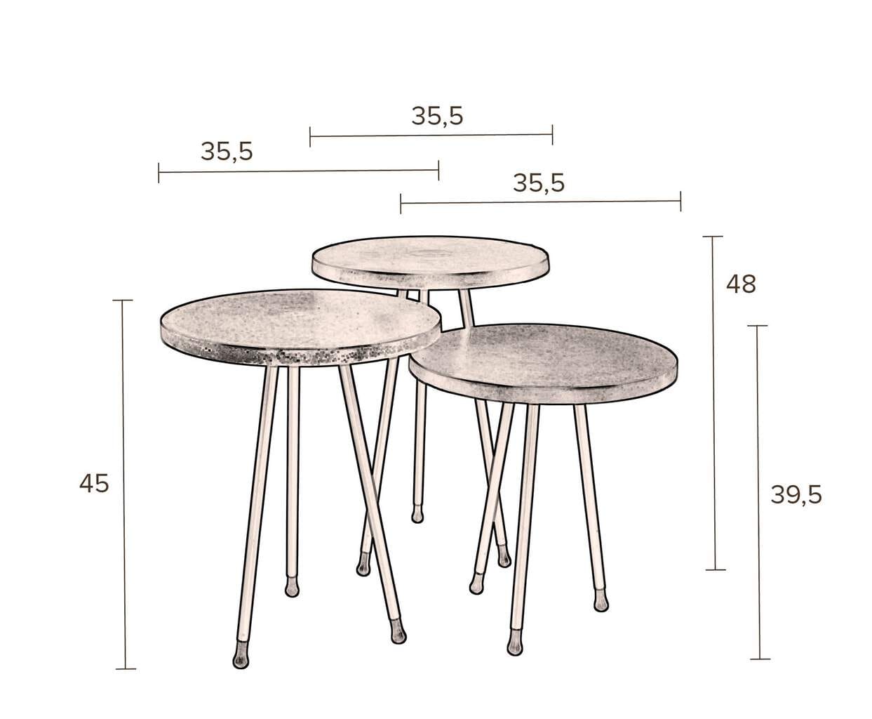 3-er Set ALIM, Beistelltische im Antik Look von DutchBone