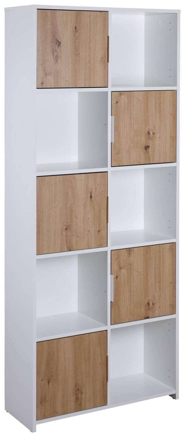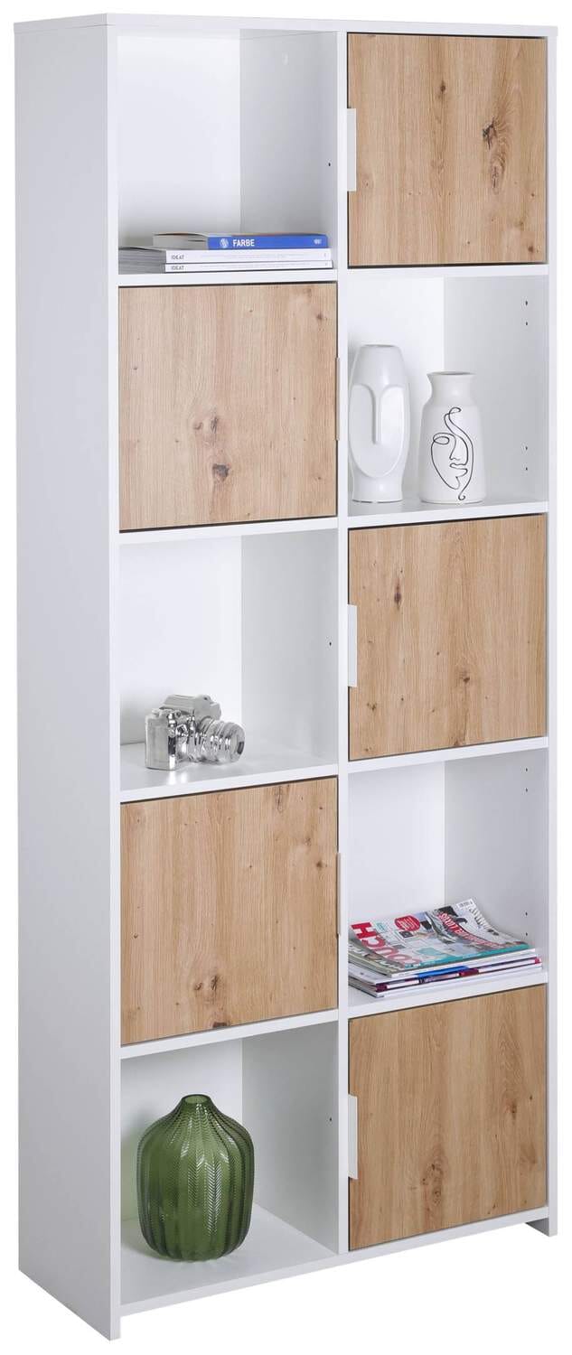 Bücherregal PEPETO 5TW Regal mit 5 Türen Optik: Weiß / Artisan Eiche