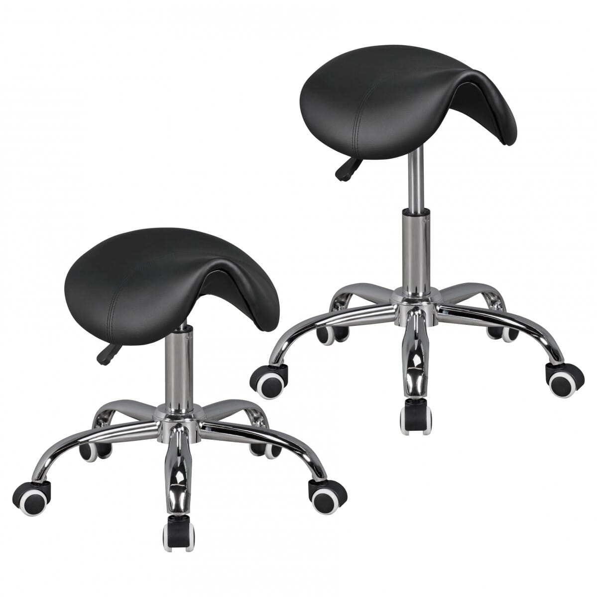 Hocker Menton höhenverstellbar Kunstleder Schwarz Sattelsitz mit Rollen