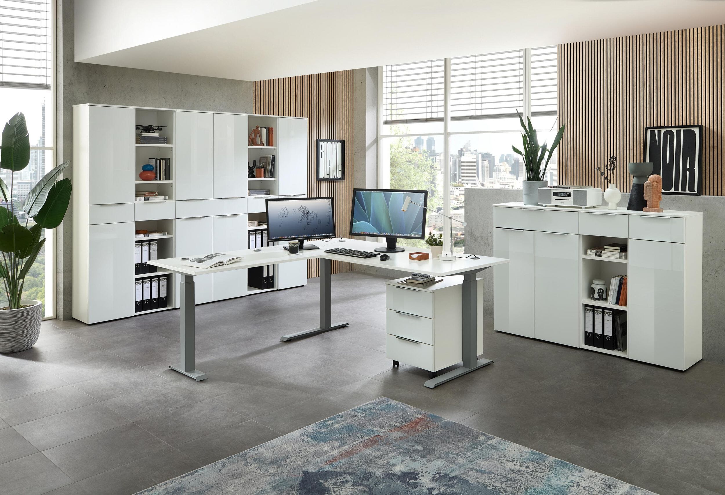 10-tlg. Komplettbüro SANTORIN Weiß & Glas – inkl. Eckschreibtisch