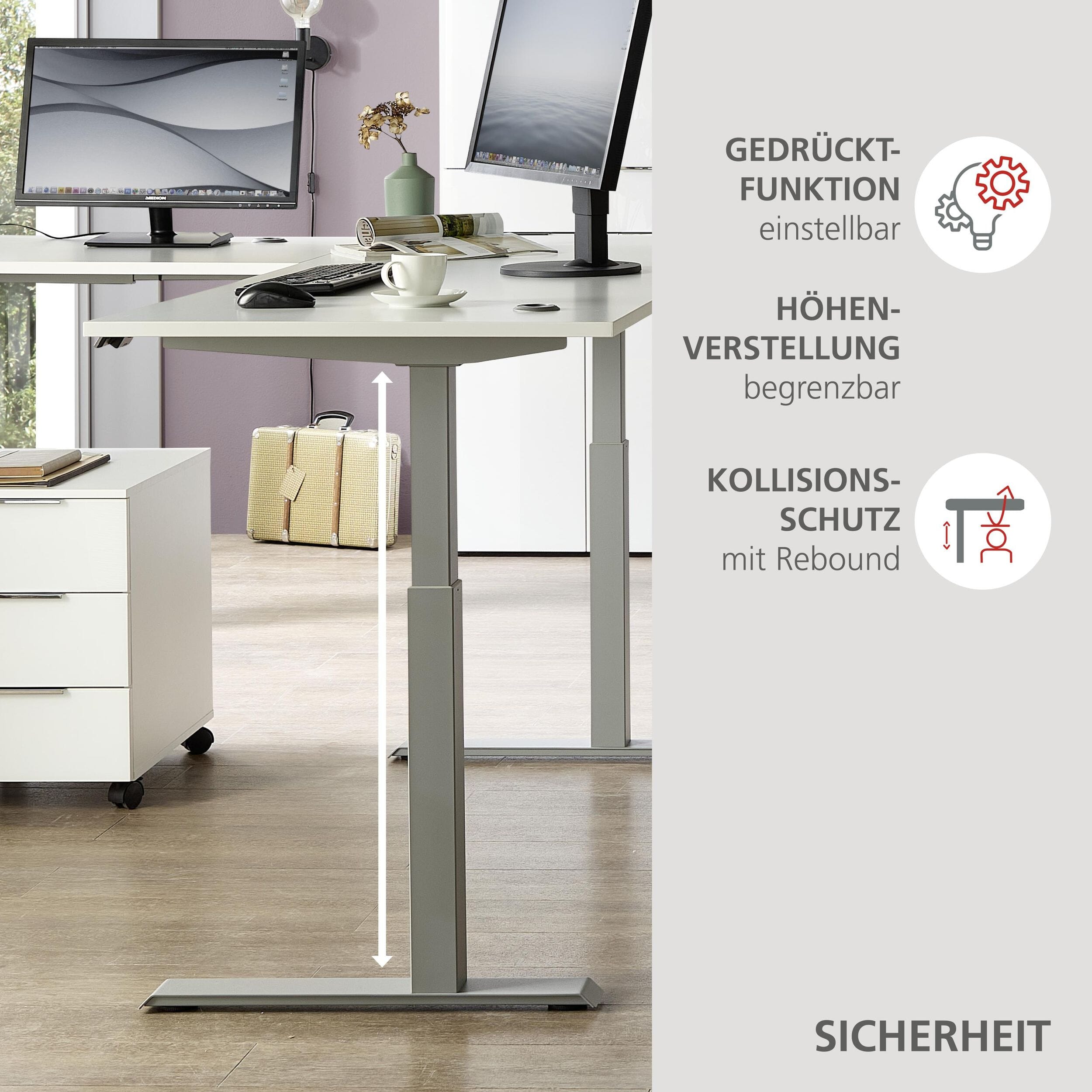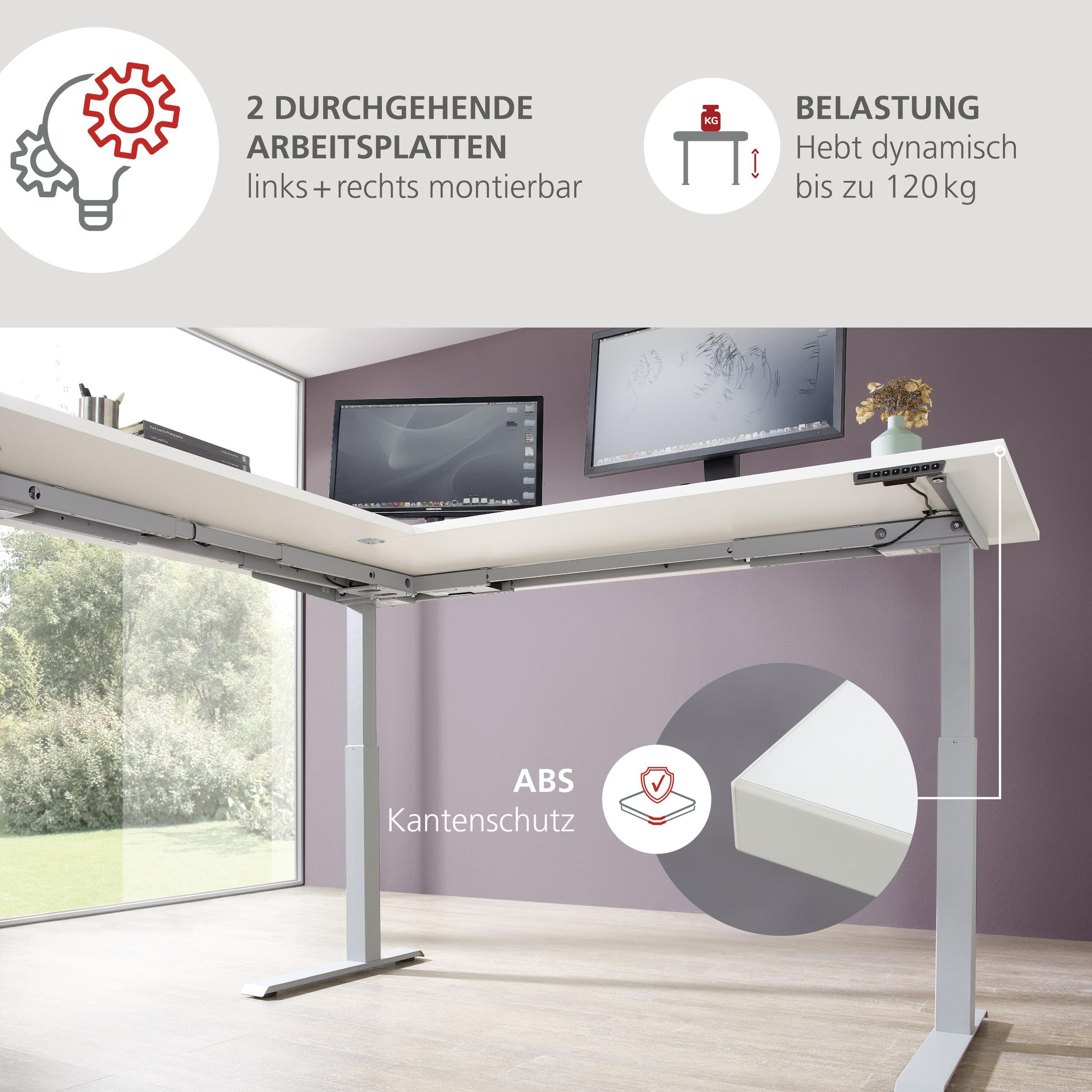 - Ergonomisches Arbeiten: Großer Winkelschreibtisch (185x177 cm) mit elektrischer Höhenverstellung (72-120 cm) und praktischer Memory-Funktion.