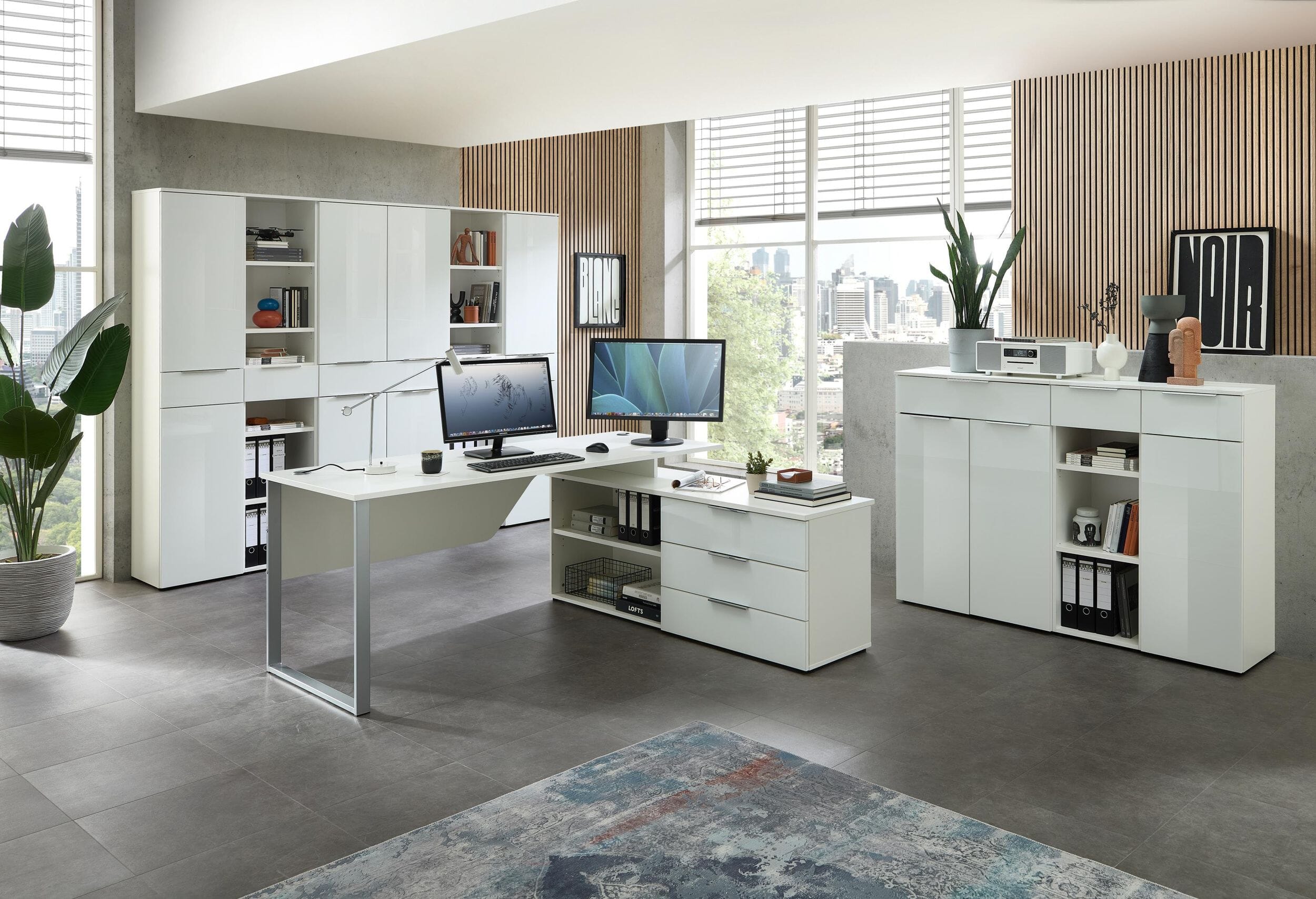 9-tlg. Komplettbüro SANTORIN II Weiß & Glas – inkl. Eckschreibtisch