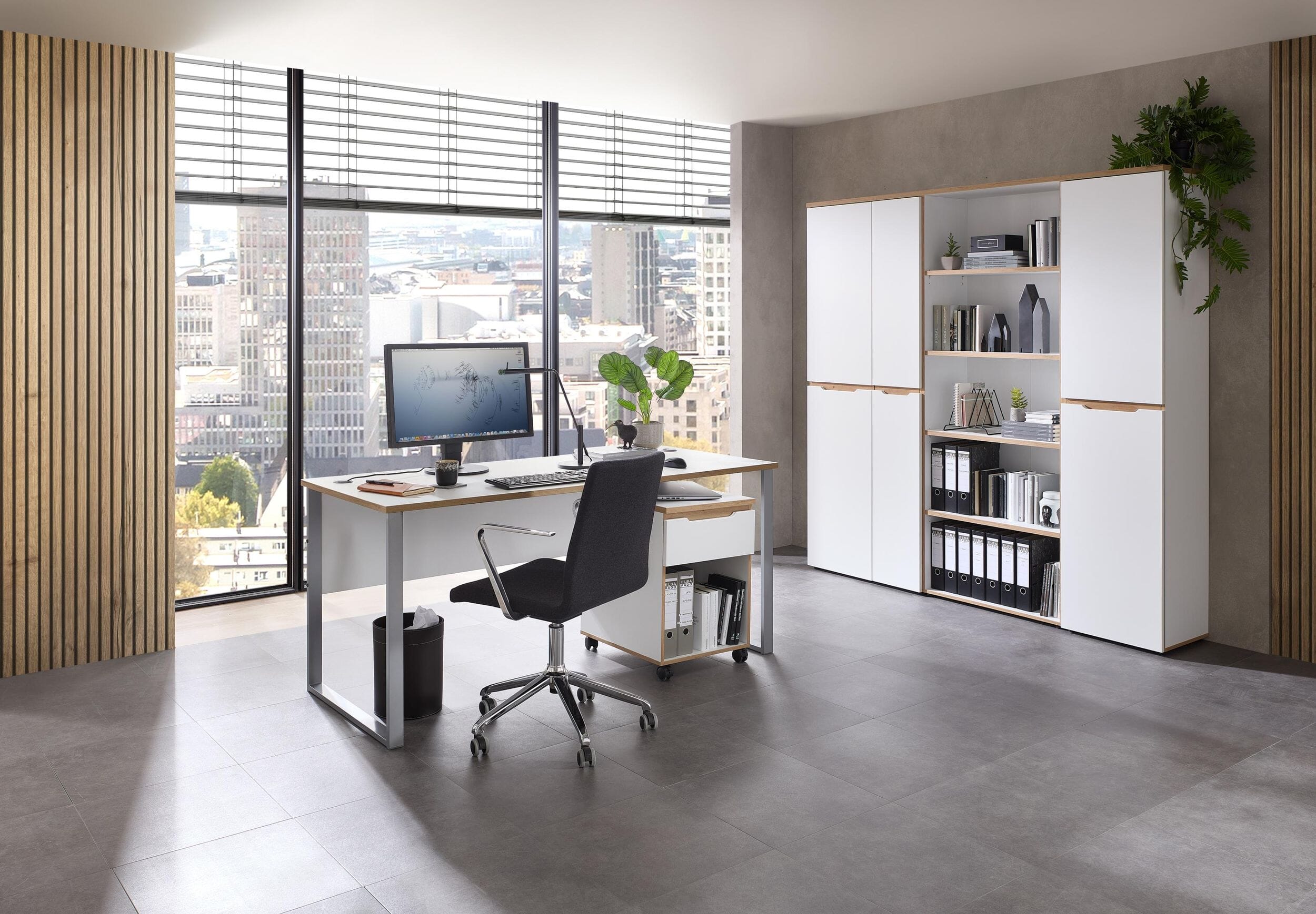 Das Büroset MEMPHIS in strahlendem Weiß mit Akzenten in Artisan Eiche Nachbildung ist ein absolutes Highlight für Ihr Büro. Die neue Farbkombination wirkt clean, zeitlos und modern zugleich.