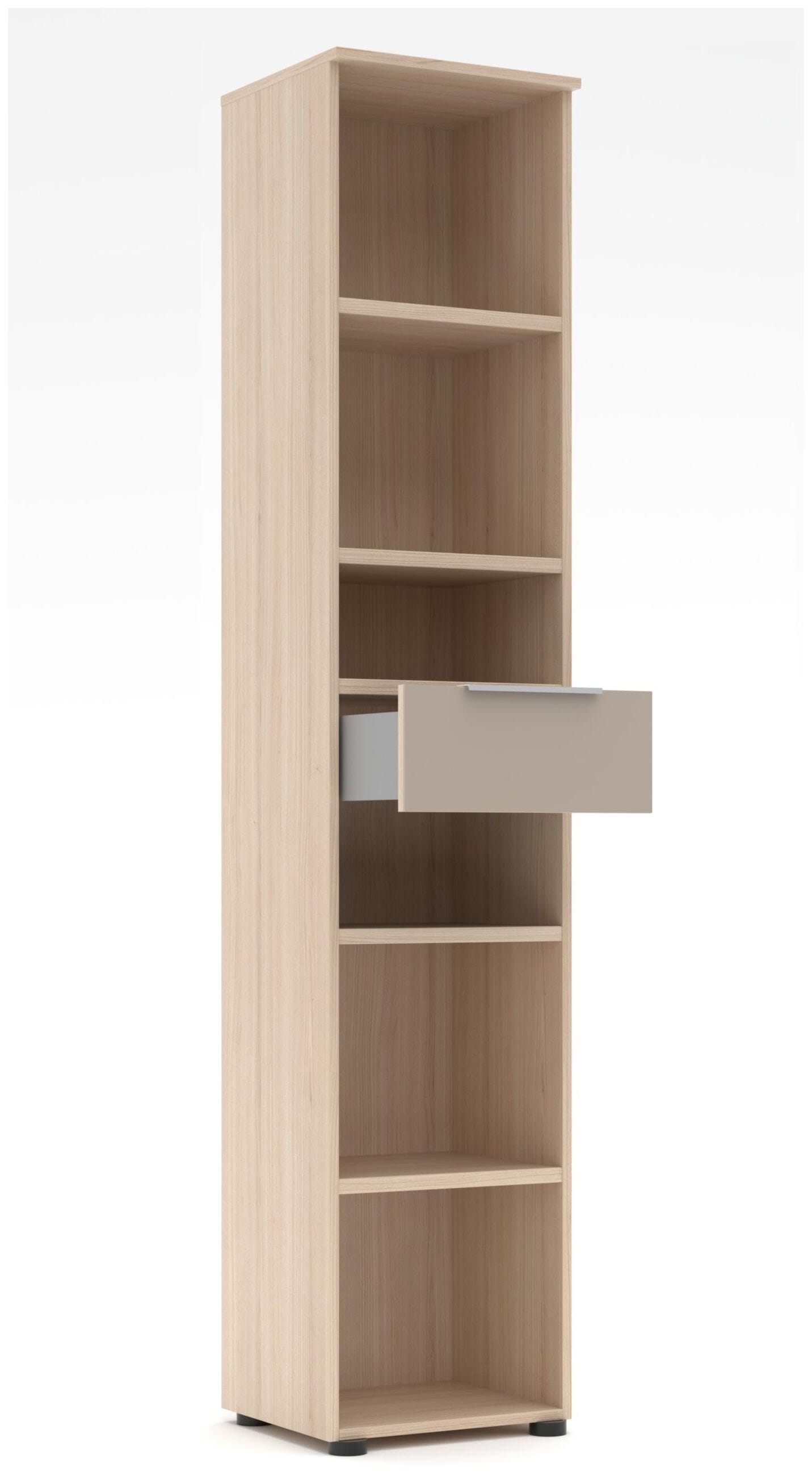 - 1x Schmales Büroregal (Typ 06): Je 1 Schubkasten, 6 offene Fächer, B/H/T ca. 40 / 198 / 38 cm
