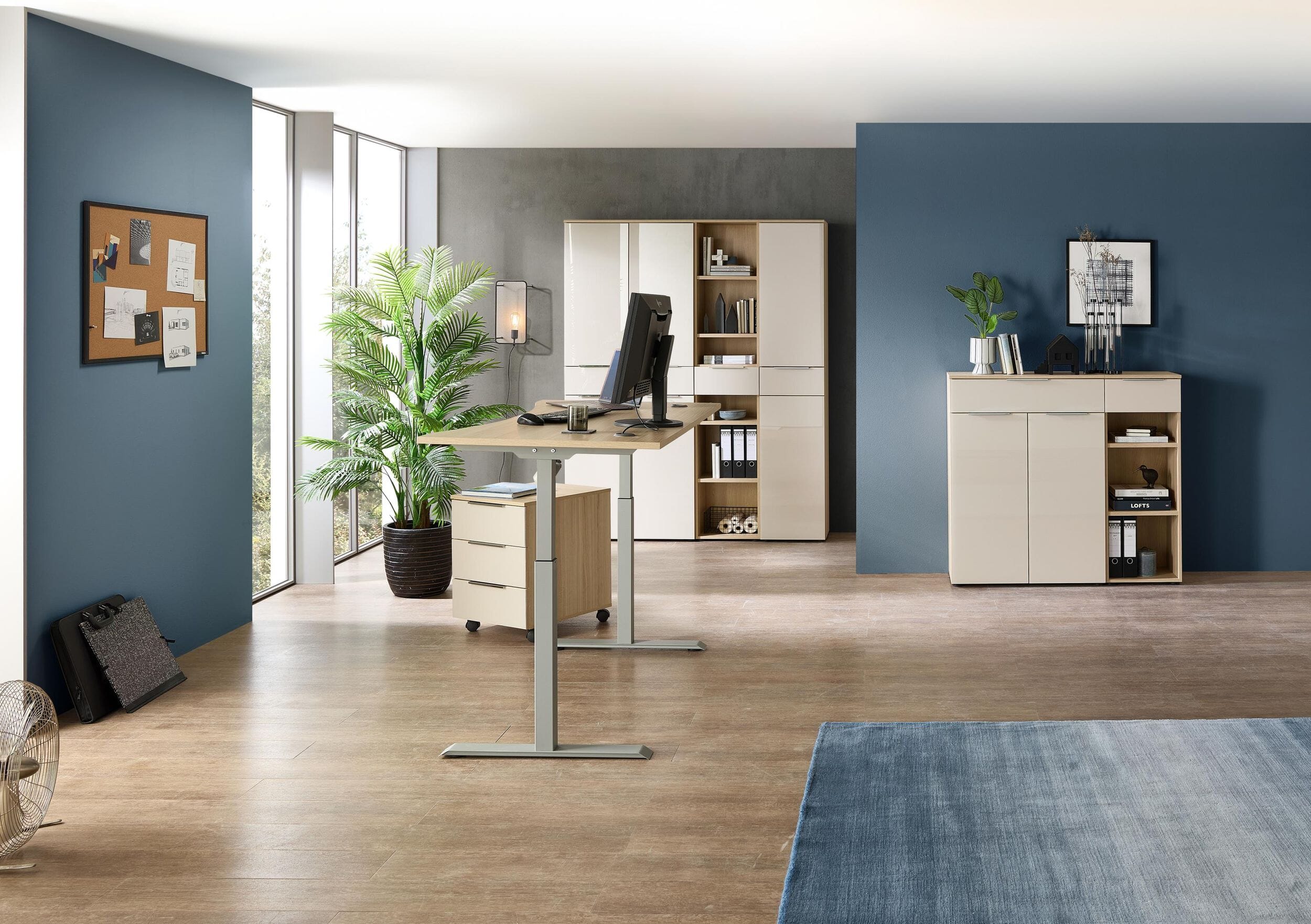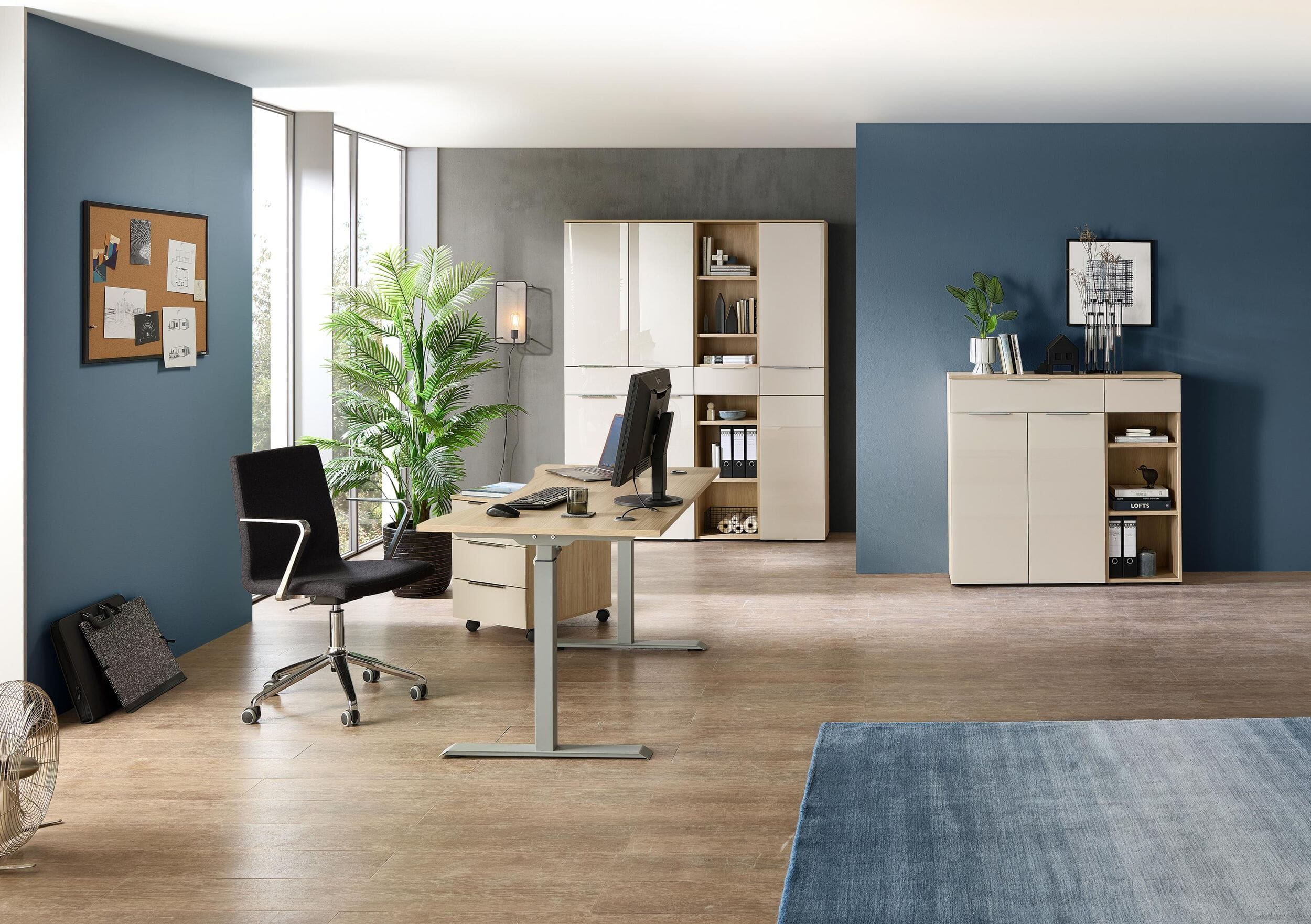 Komplettbüro Büro-Set SANTORIN VII Riva Eiche & Glas Cashmere 7-teilig