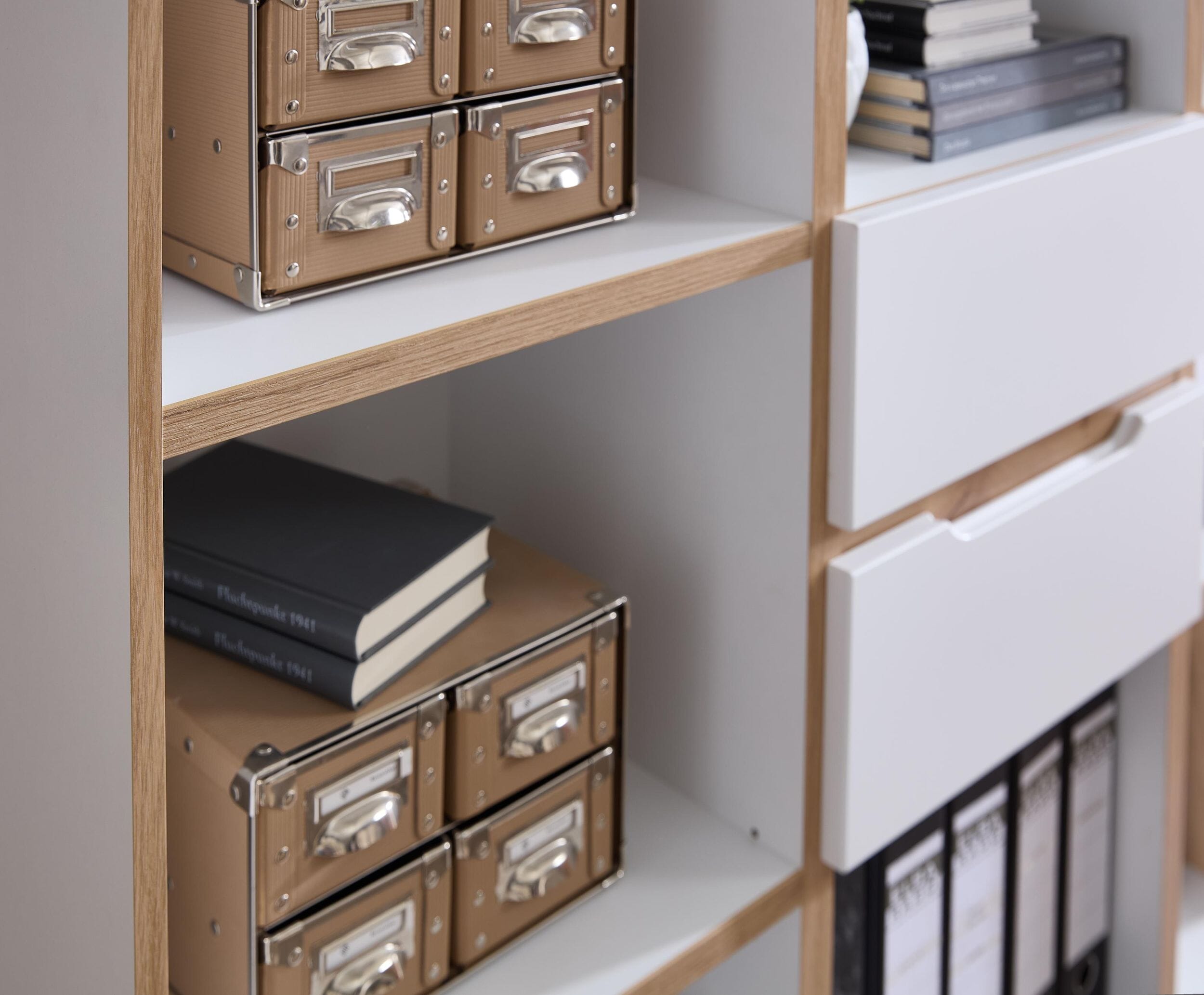 - Perfekte Organisation: Sämtliche Regalfächer sind auf Standard-Ordnerhöhe ausgelegt.