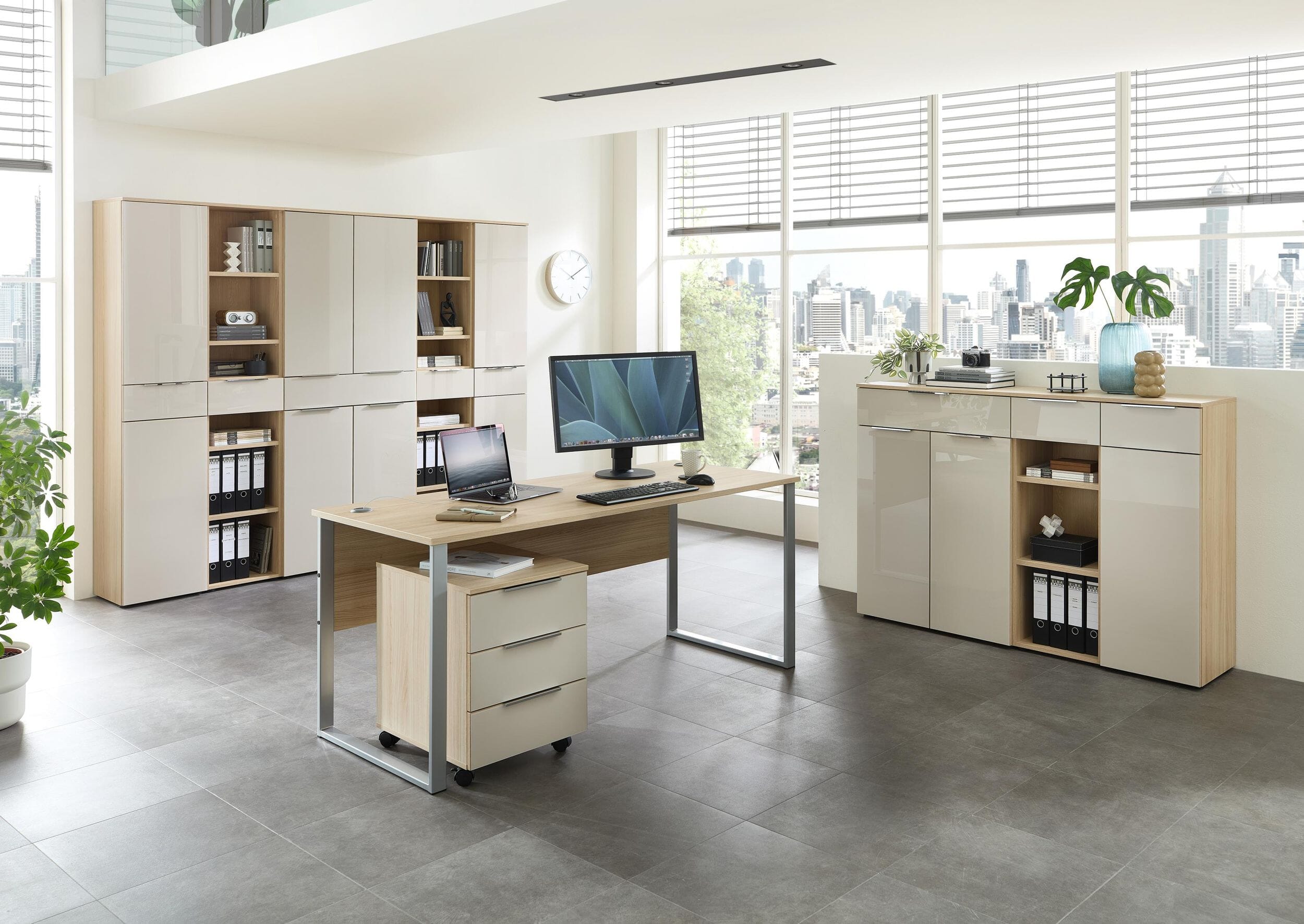 Komplettbüro SANTORIN III Riva Eiche & Glas Cashmere 10-teilig