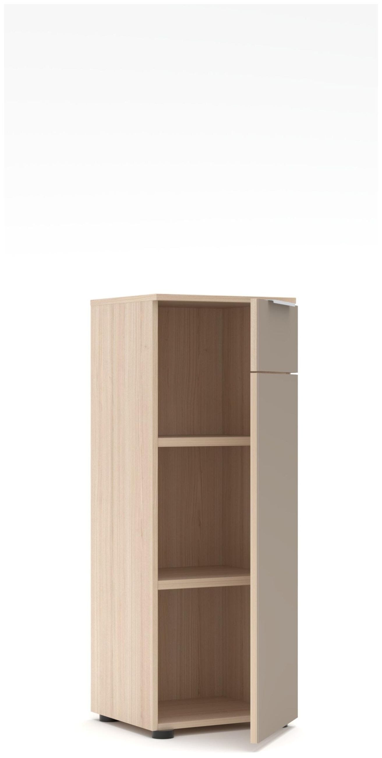 - 1x Kompakter Büroschrank (Typ 13): 1 Tür, 2 Fachböden, B/H/T ca. 40 / 110 / 38 cm