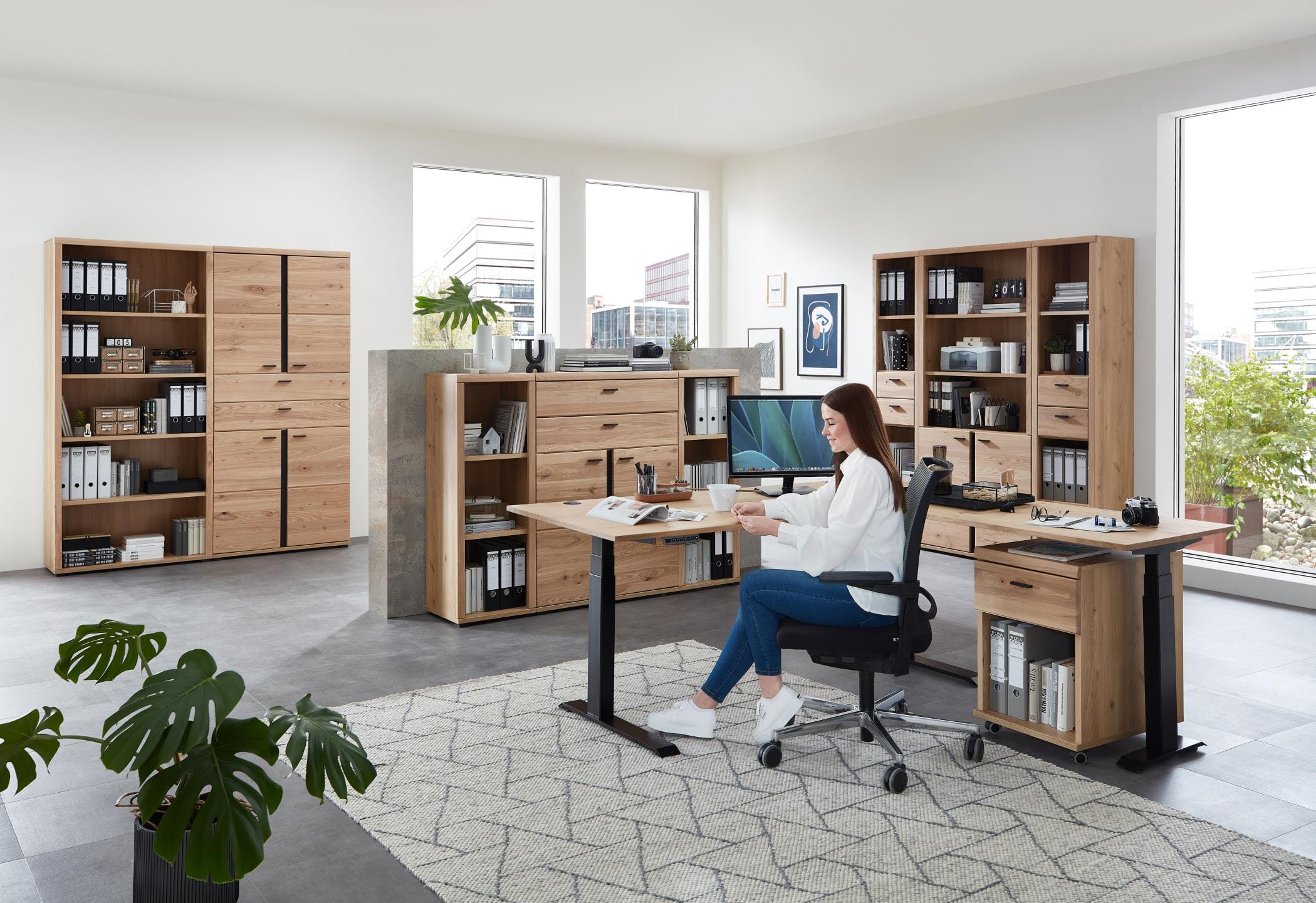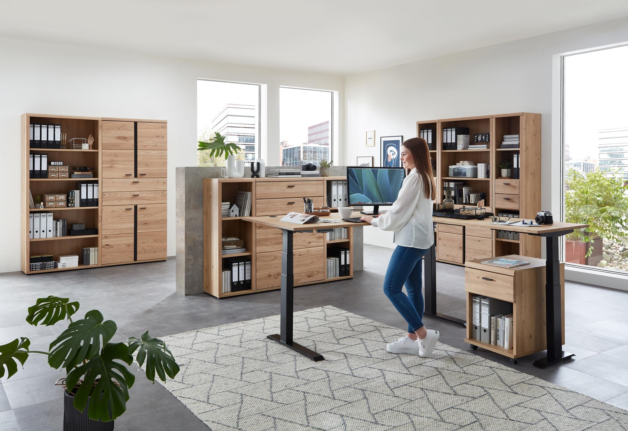Das Büroset SONOS mit Fronten aus Altesche Massivholz mit gebürsteter Oberfläche und Korpus in Old Artisan Oak Nachbildung ist ein absolutes Highlight für Ihr Büro, die Farbgebung wirkt modern und natürlich zugleich.