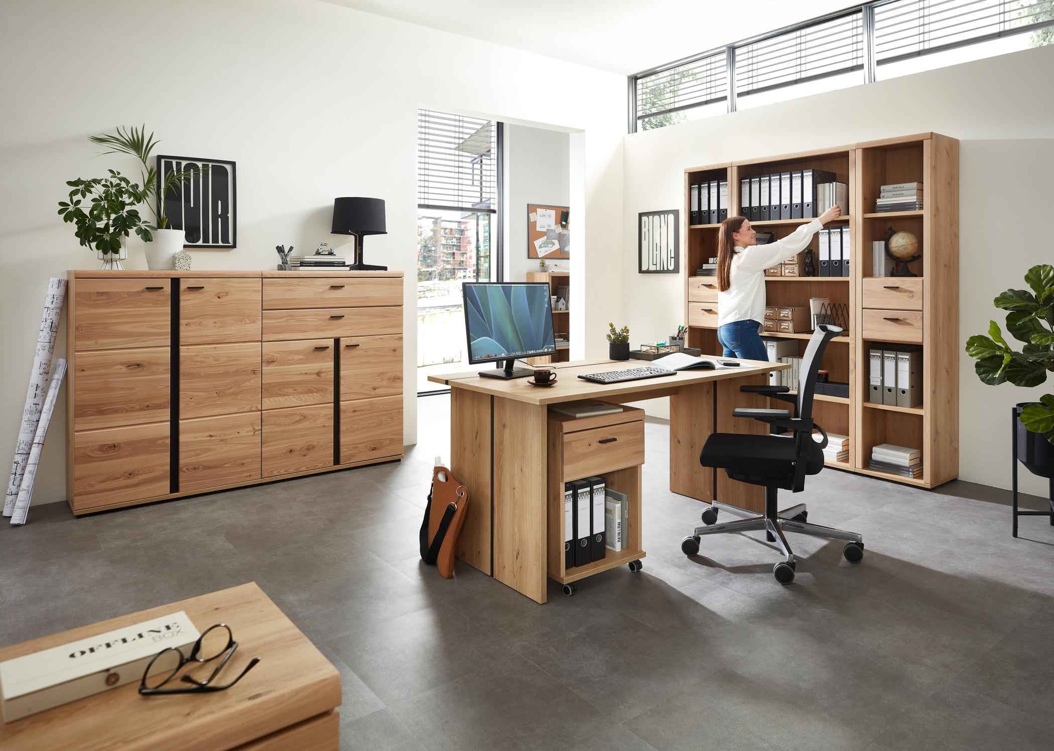 Das Büroset SONOS mit Fronten aus Altesche Massivholz mit gebürsteter Oberfläche und Korpus in Old Artisan Oak Nachbildung ist ein absolutes Highlight für Ihr Büro, die Farbgebung wirkt modern und natürlich zugleich.
