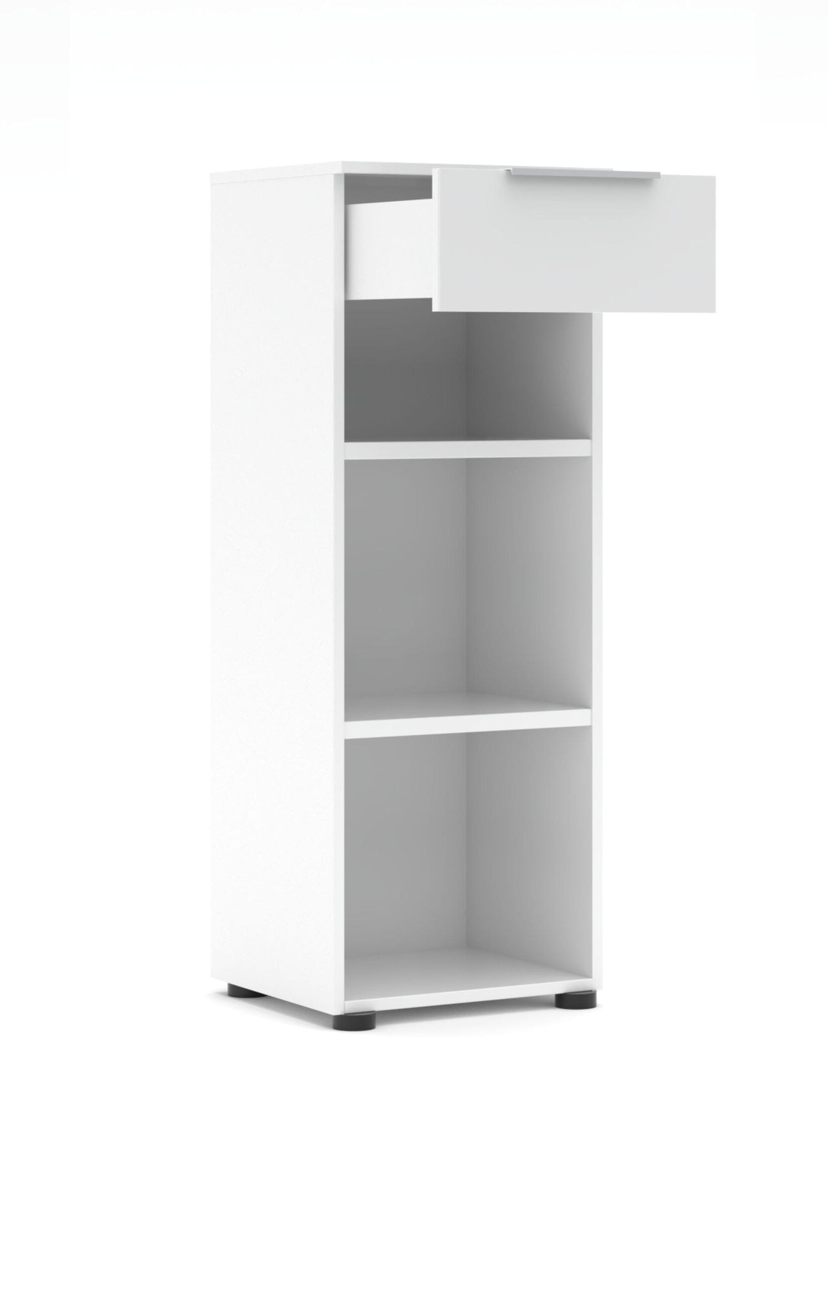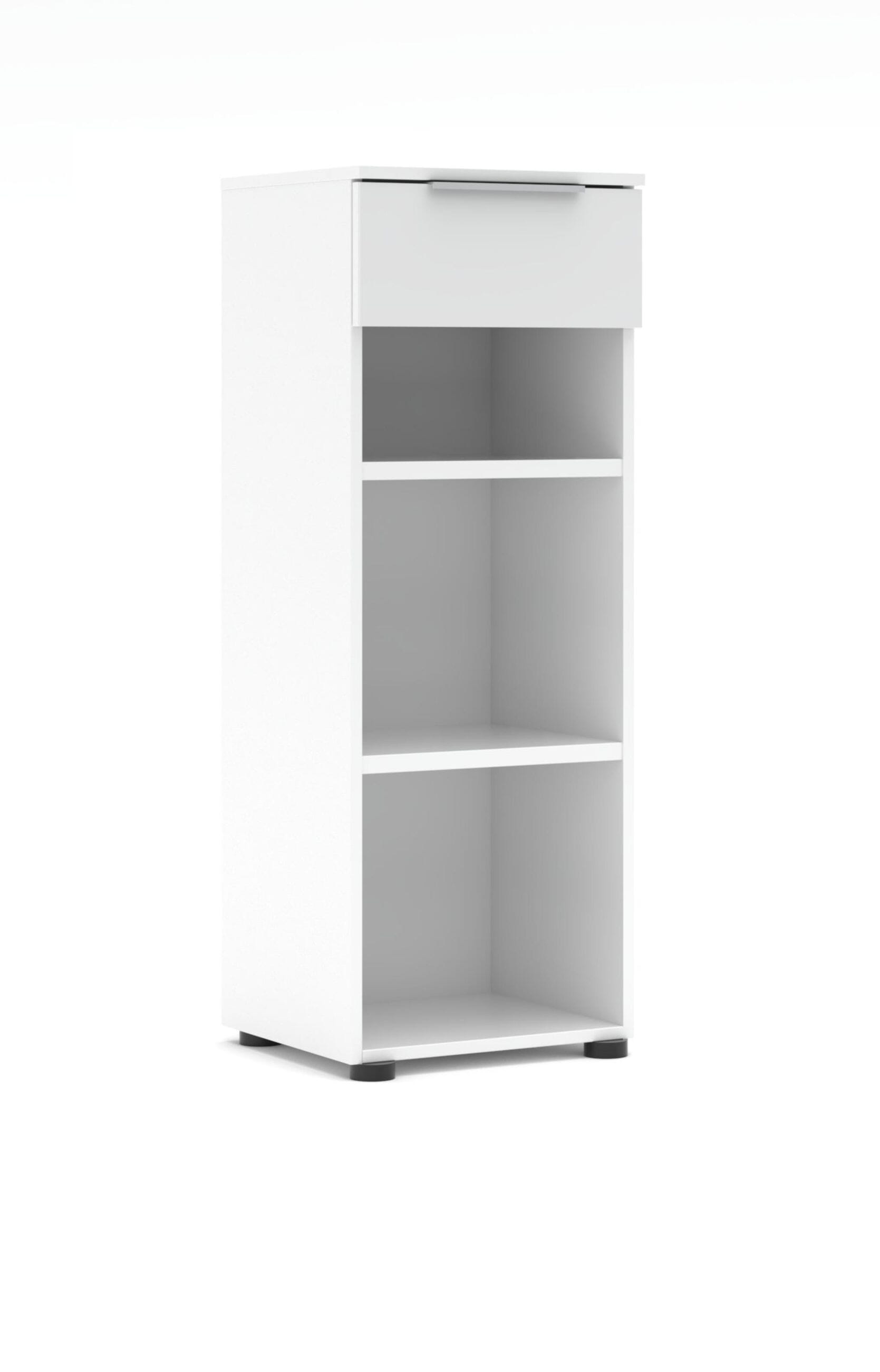 Das Santorin Büroregal ist die perfekte Ergänzung für ein organisiertes und stilvolles Arbeitsumfeld. Mit seiner kompakten Breite von 40 cm und einer komfortablen Höhe von 110 cm bietet es eine ideale Kombination aus offenem Stauraum für den schnellen Zugriff und einer diskreten Schublade für Kleinteile. Die zeitlose Optik in Weiß harmoniert wunderbar mit der edlen weißen Glasfront des Schubkastens und verleiht Ihrem Home-Office eine moderne, professionelle Ausstrahlung.