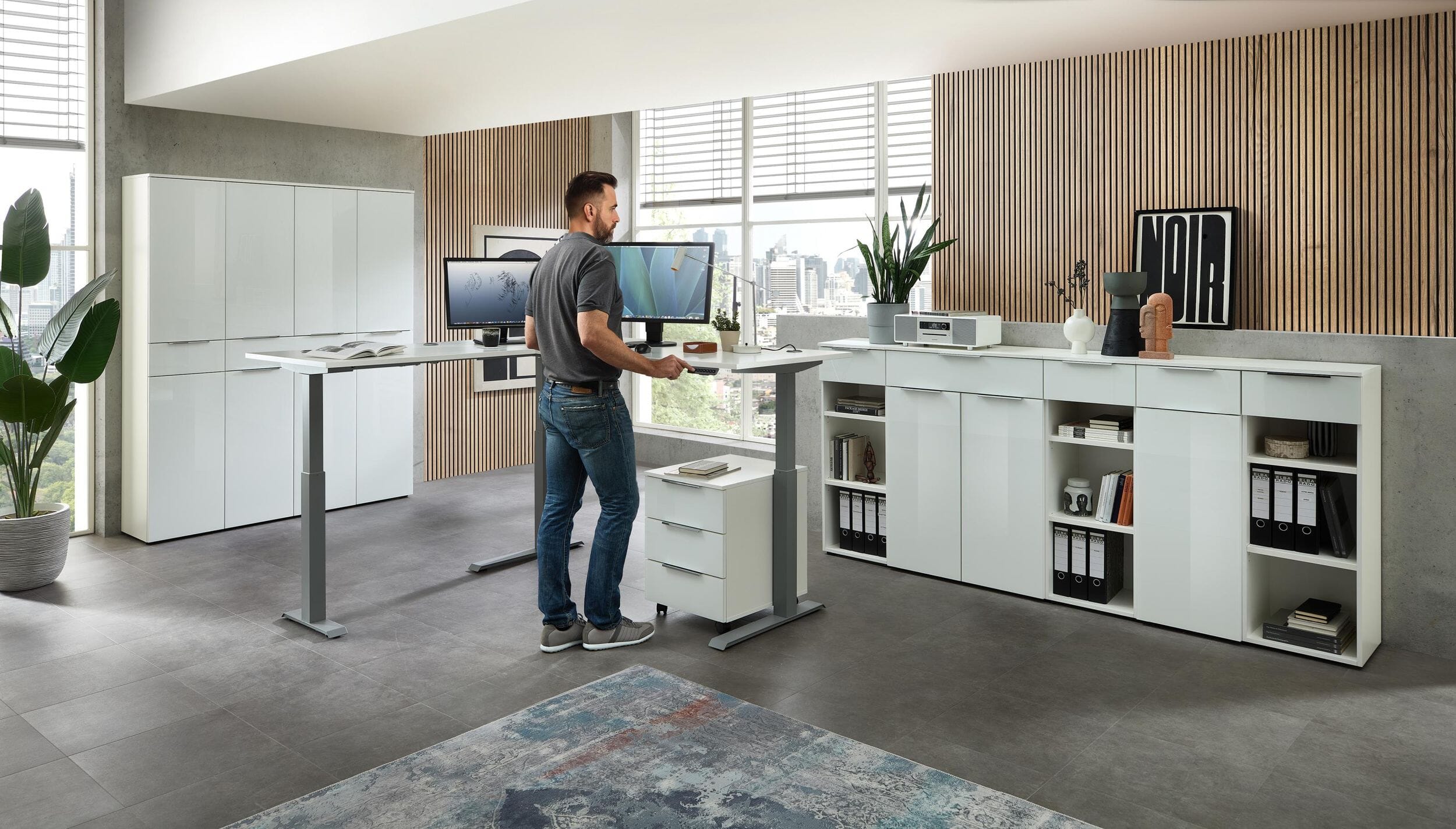 Alle Elemente dieser Serie lassen sich perfekt miteinander kombinieren, sodass Sie sich Ihr Büro ganz nach Ihren Wünschen als harmonisches Komplettset zusammenstellen können.