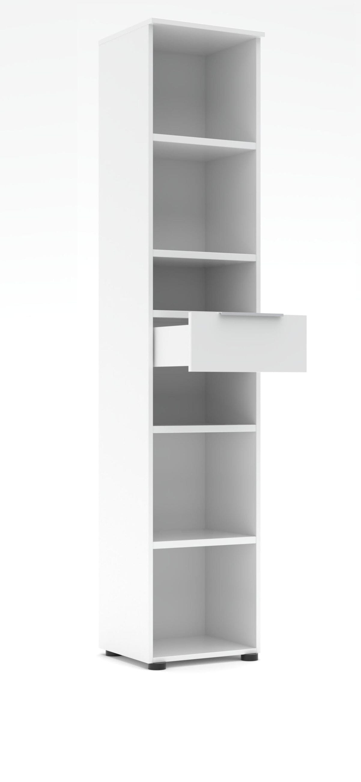Schmales Büroregal Aktenregal SANTORIN Weiß 6 Fächer & Schubkasten