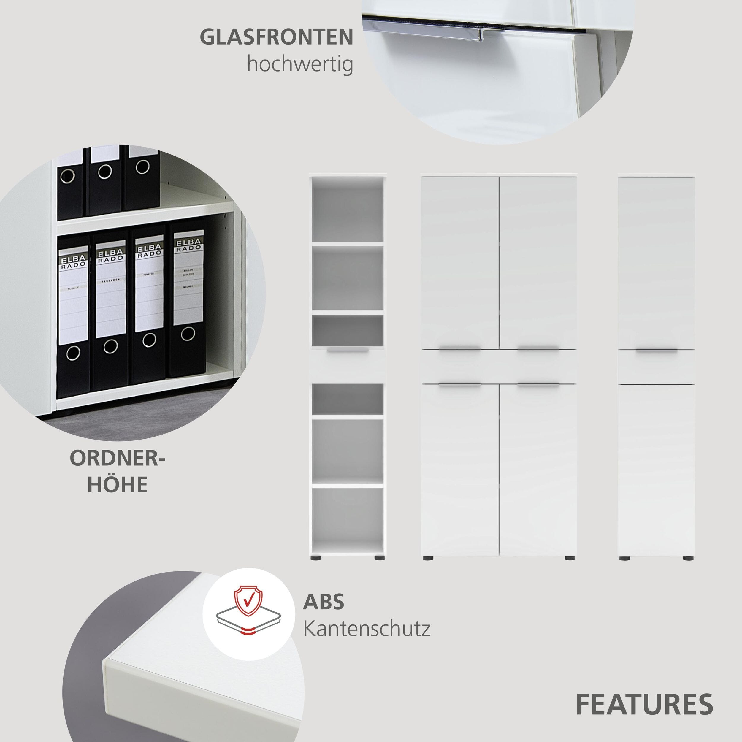 Büroregal SANTORIN Weiß & weißes Glas – schmal 40x198 cm