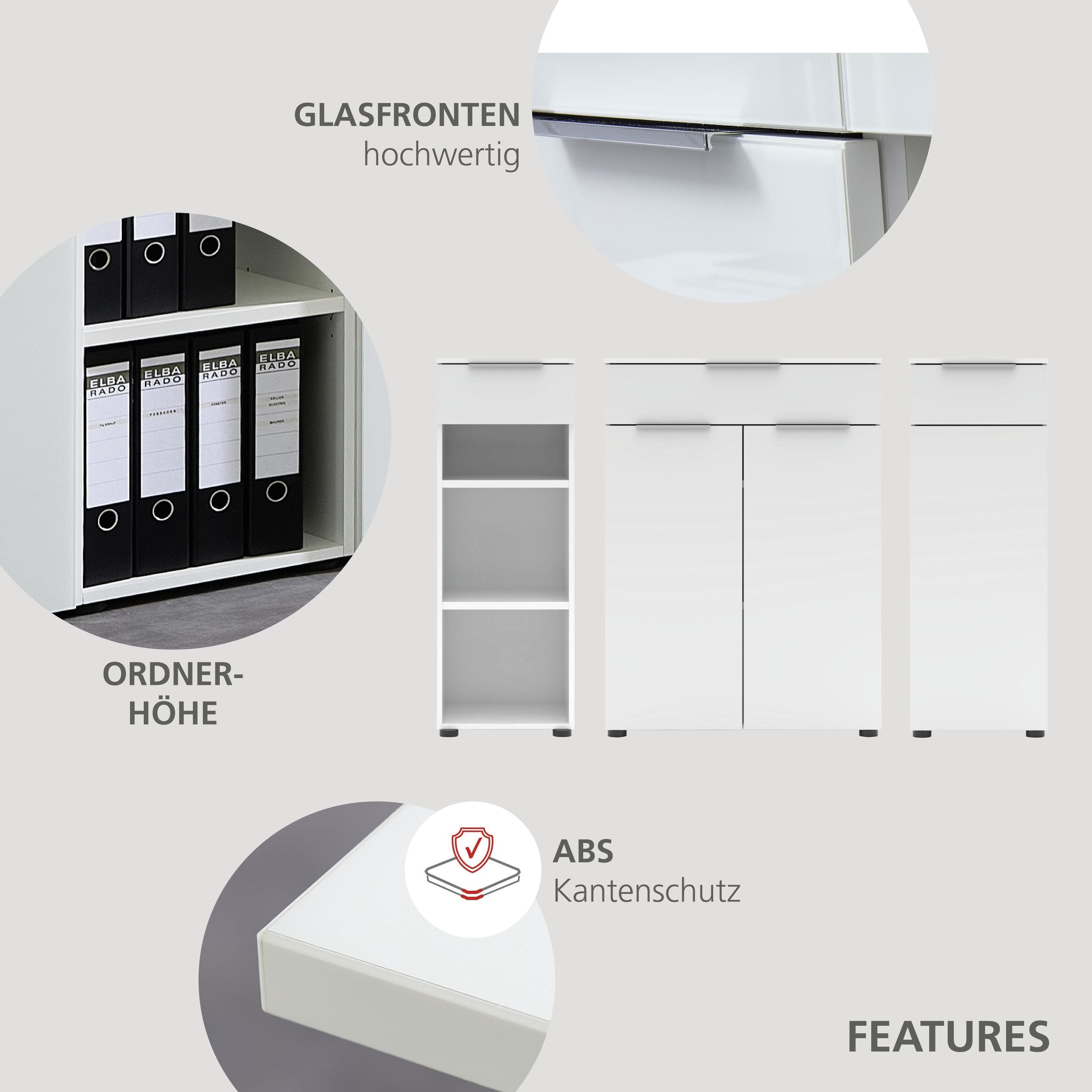 Büroschrank SANTORIN Weiß & weißes Glas – 80x110 cm