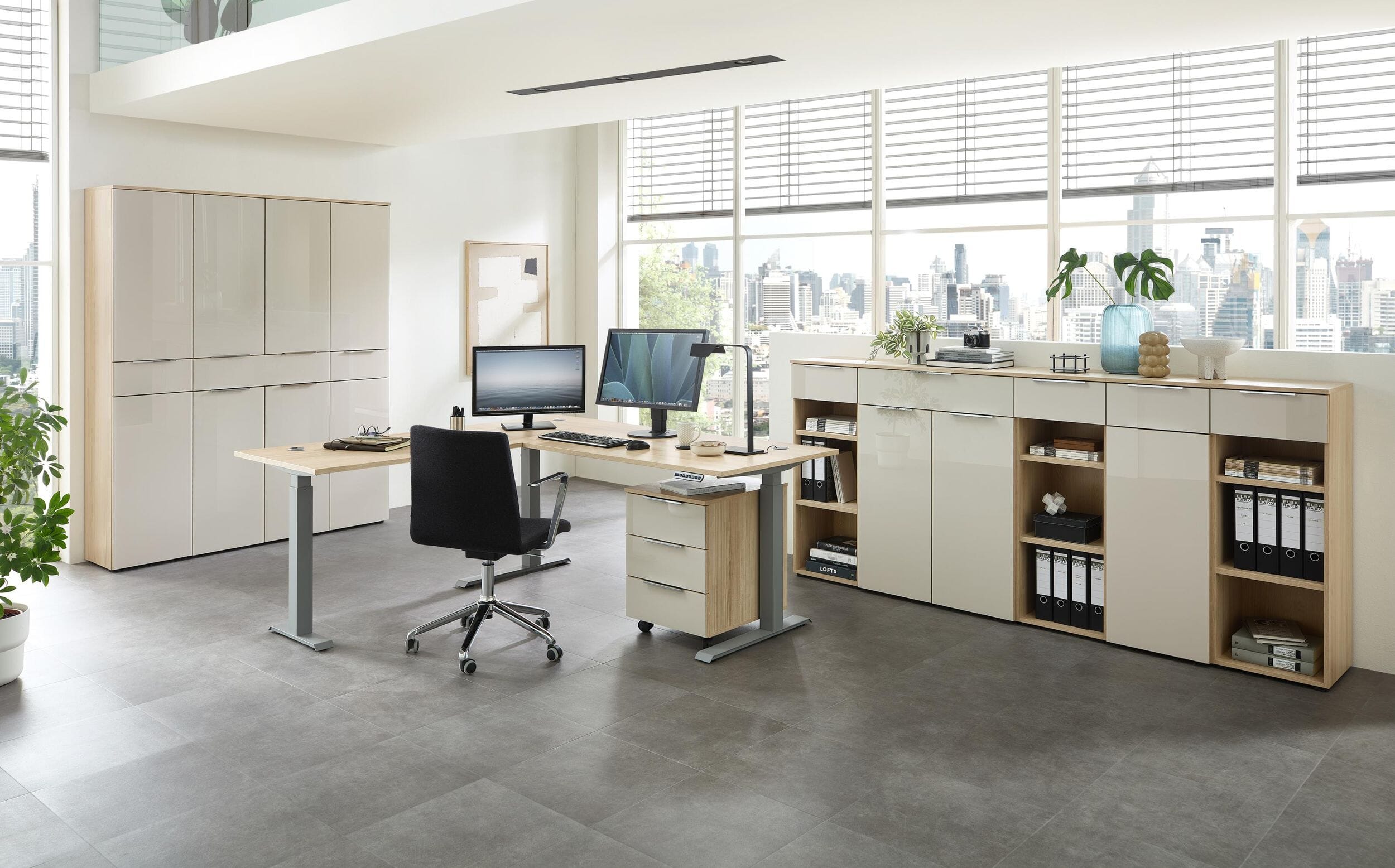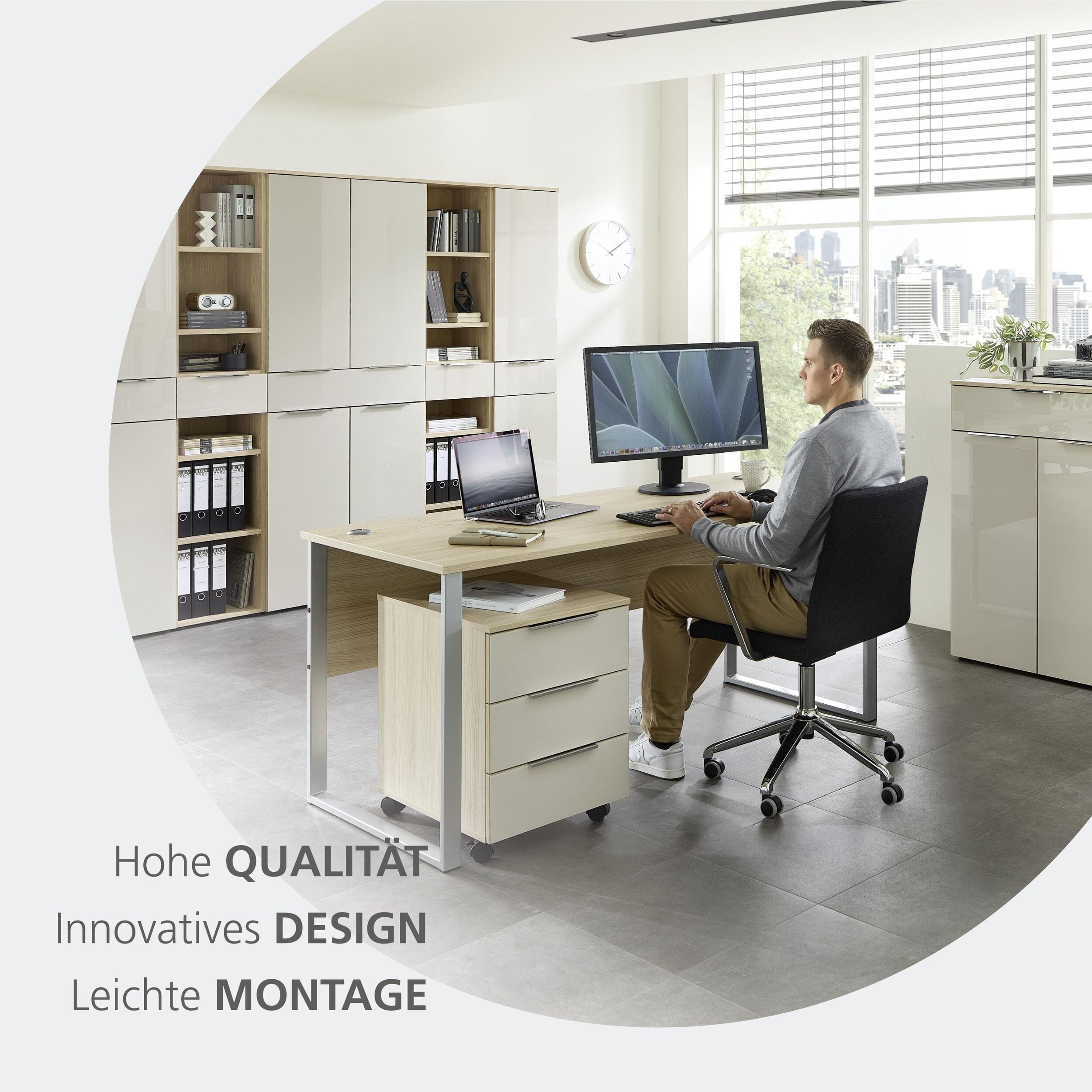 Alle Elemente dieser Serie lassen sich perfekt miteinander kombinieren, sodass Sie sich Ihr Büro ganz nach Ihren Wünschen als harmonisches Komplettset zusammenstellen können.