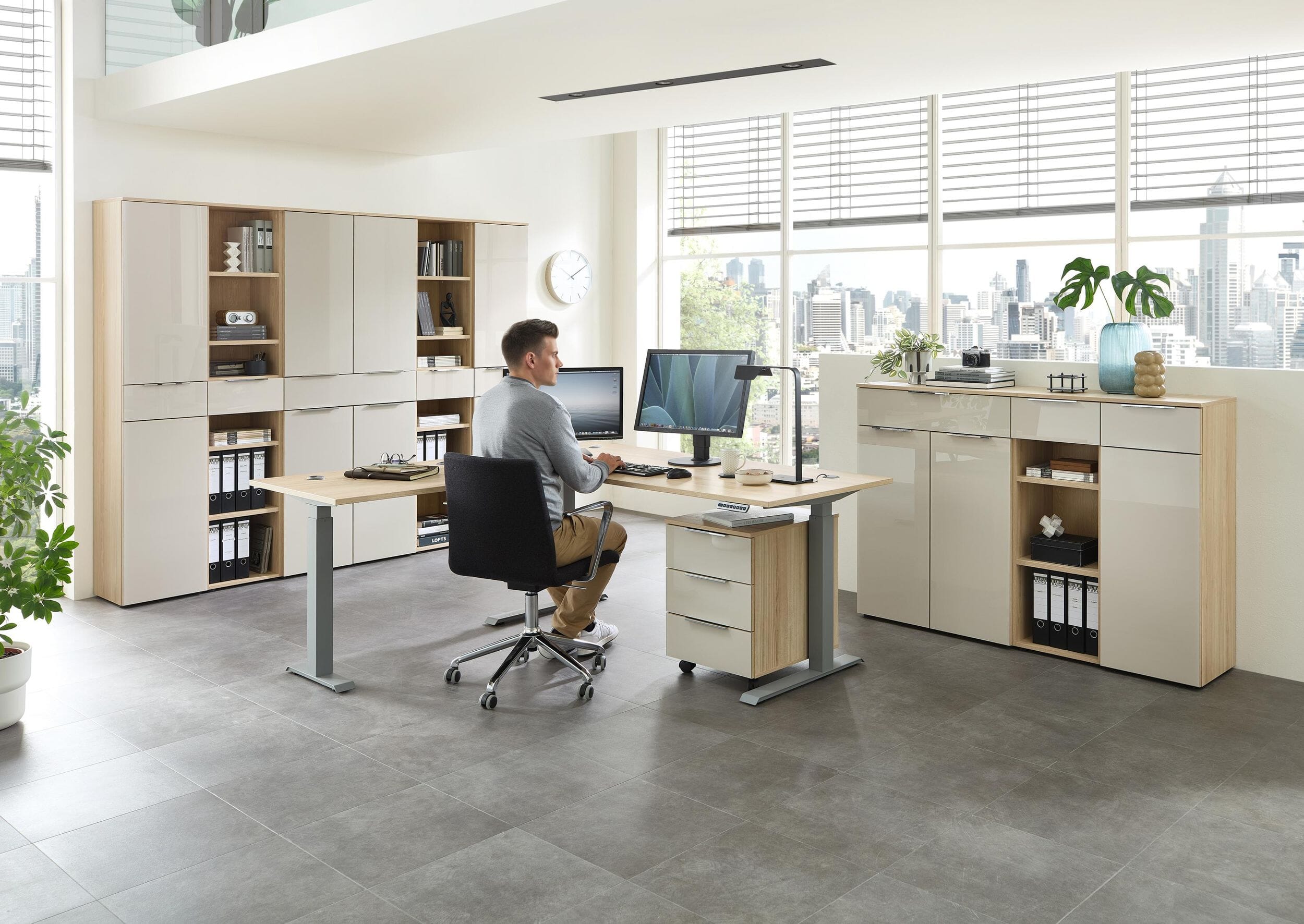 Alle Elemente dieser Serie lassen sich perfekt miteinander kombinieren, sodass Sie sich Ihr Büro ganz nach Ihren Wünschen als harmonisches Komplettset zusammenstellen können.