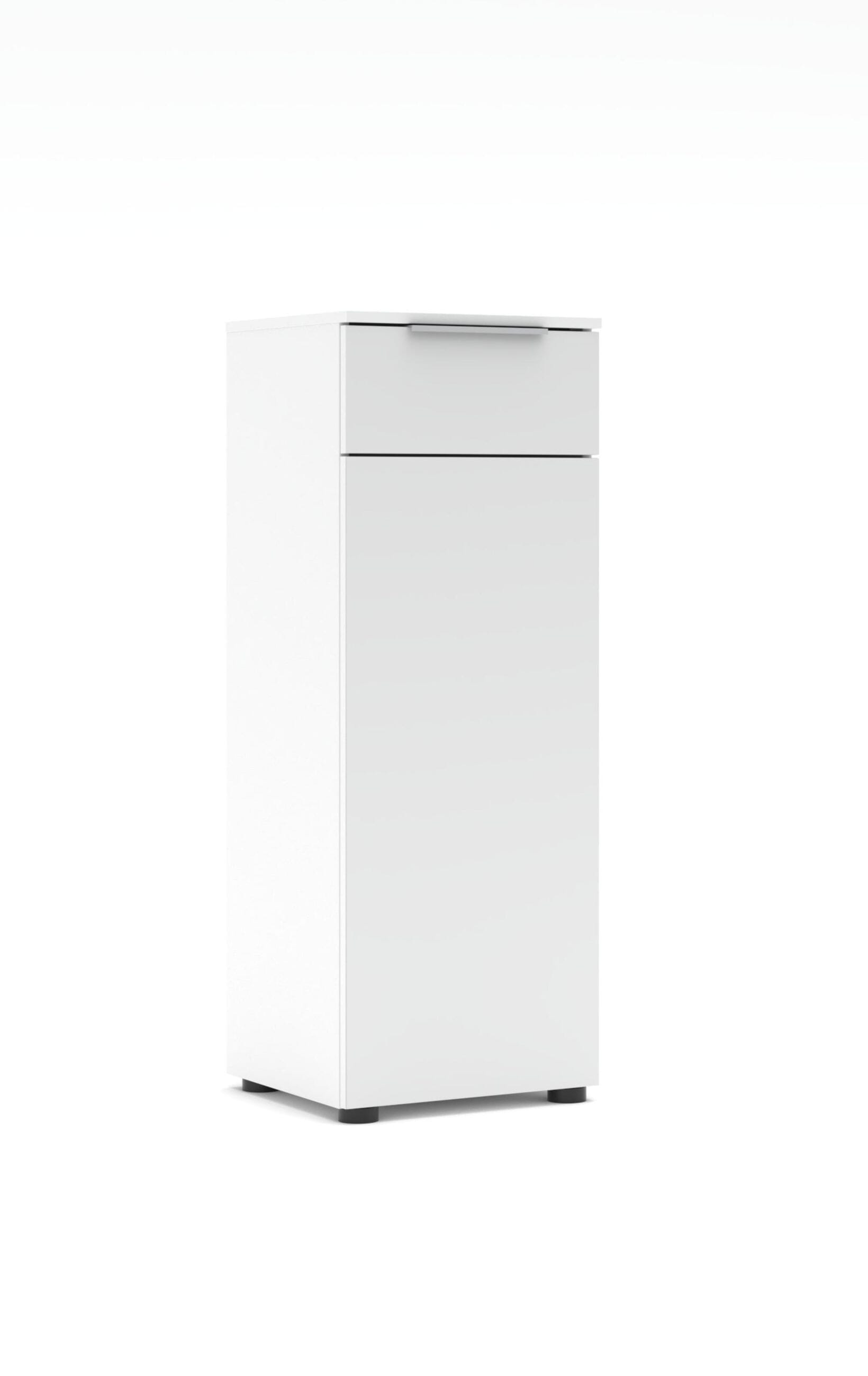 Schmaler Aktenschrank SANTORIN Weiß & weißes Glas – 40x110 cm