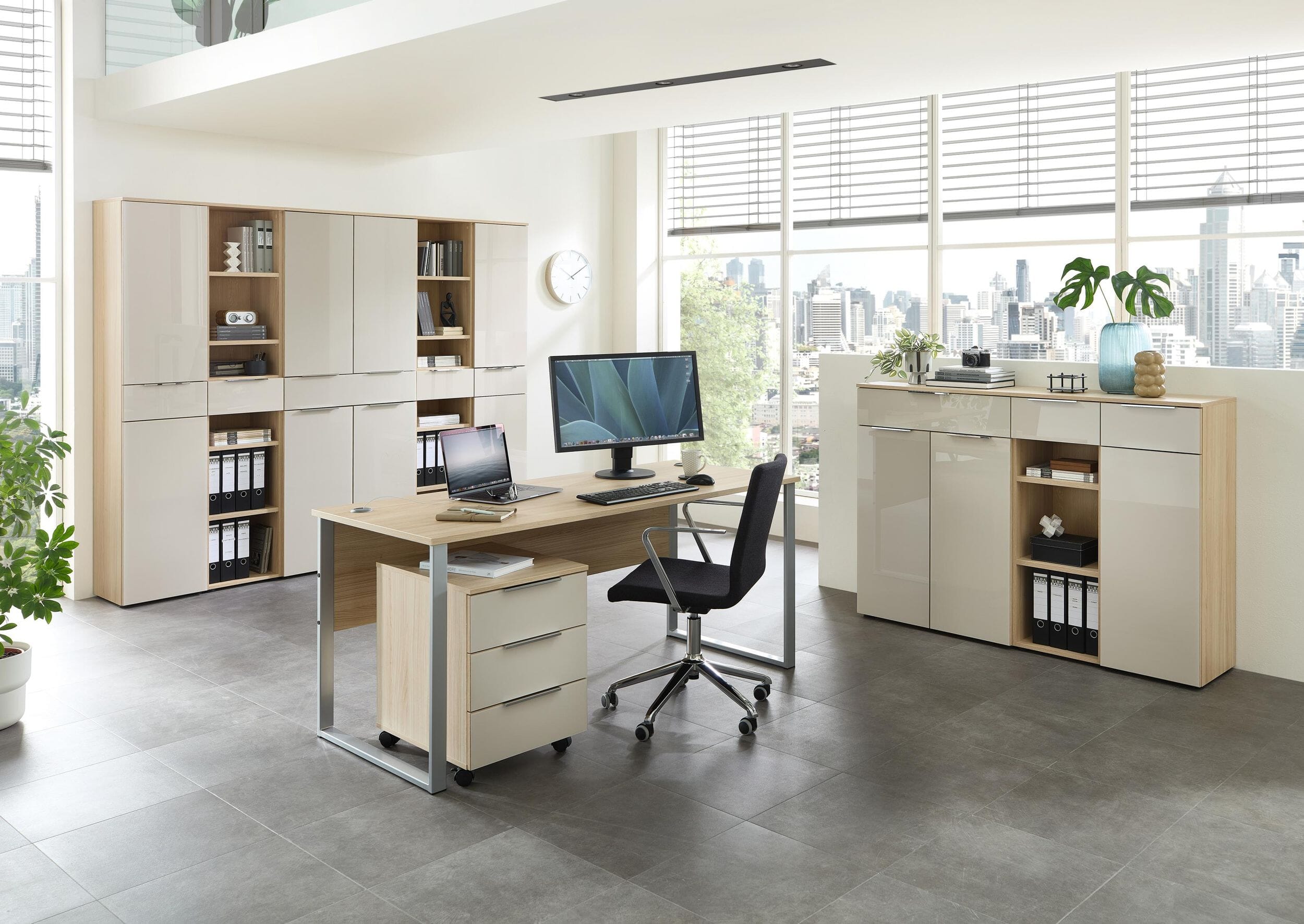 Alle Elemente dieser Serie lassen sich perfekt miteinander kombinieren, sodass Sie sich Ihr Büro ganz nach Ihren Wünschen als harmonisches Komplettset zusammenstellen können.