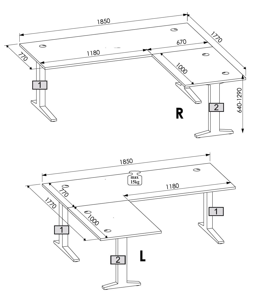 - Höhe elektrisch verstellbar von 64 bis 129 cm