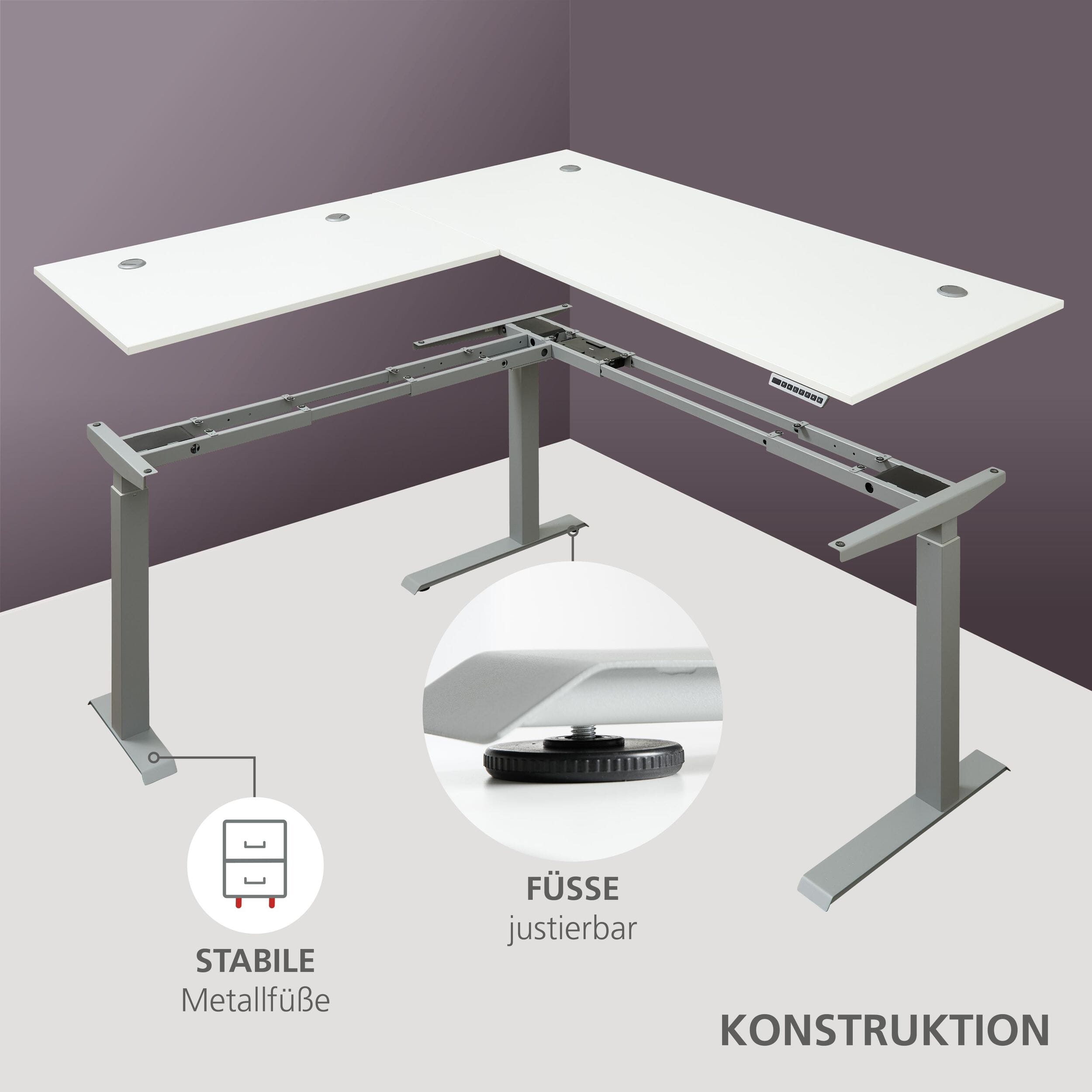 Höhenverstellbarer Eckschreibtisch SANTORIN Weiß – 185 x 177 cm