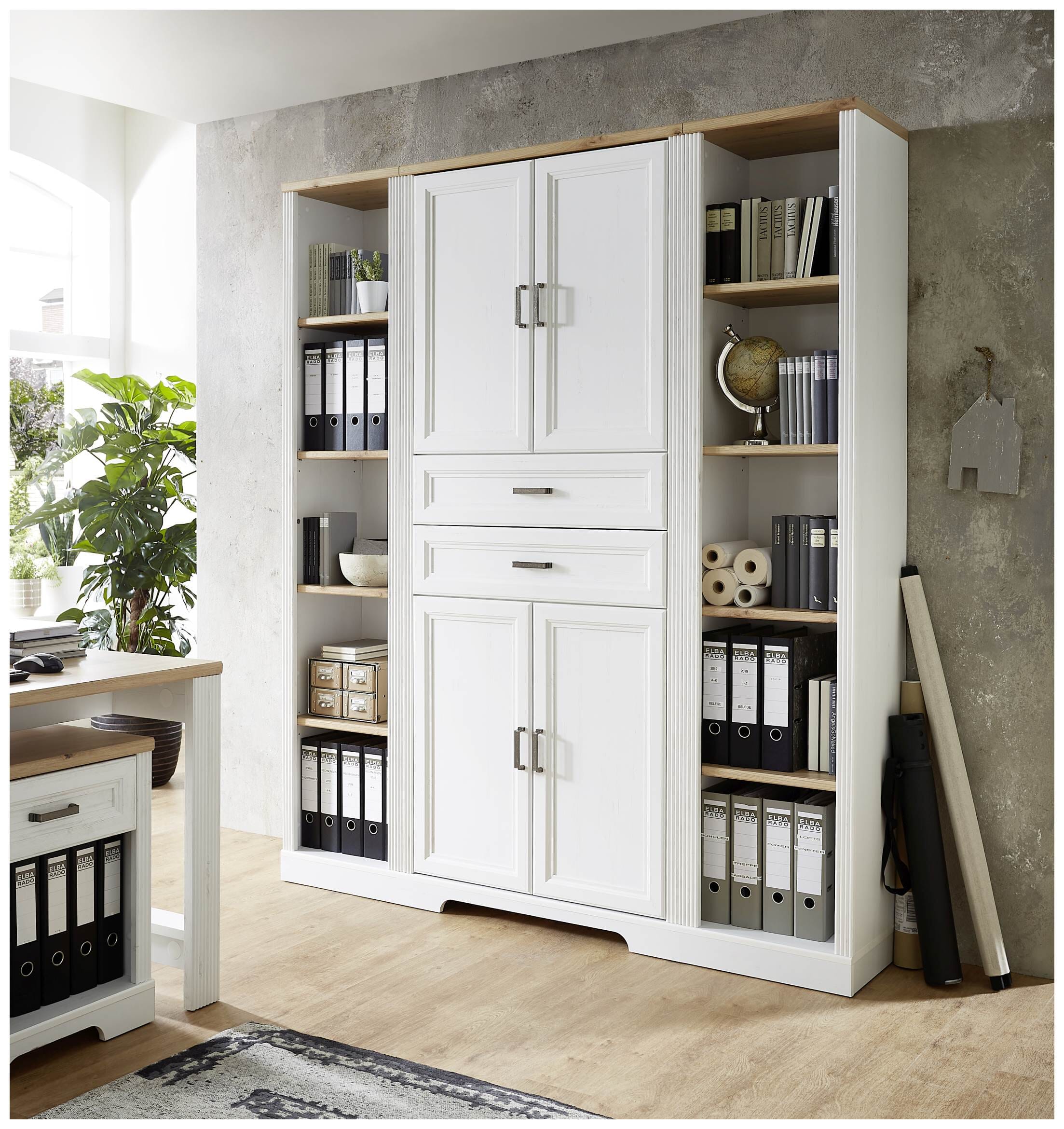 Büroschrank Bürowand Set JASMIN 3-teilig Pinie weiß Nachbildung