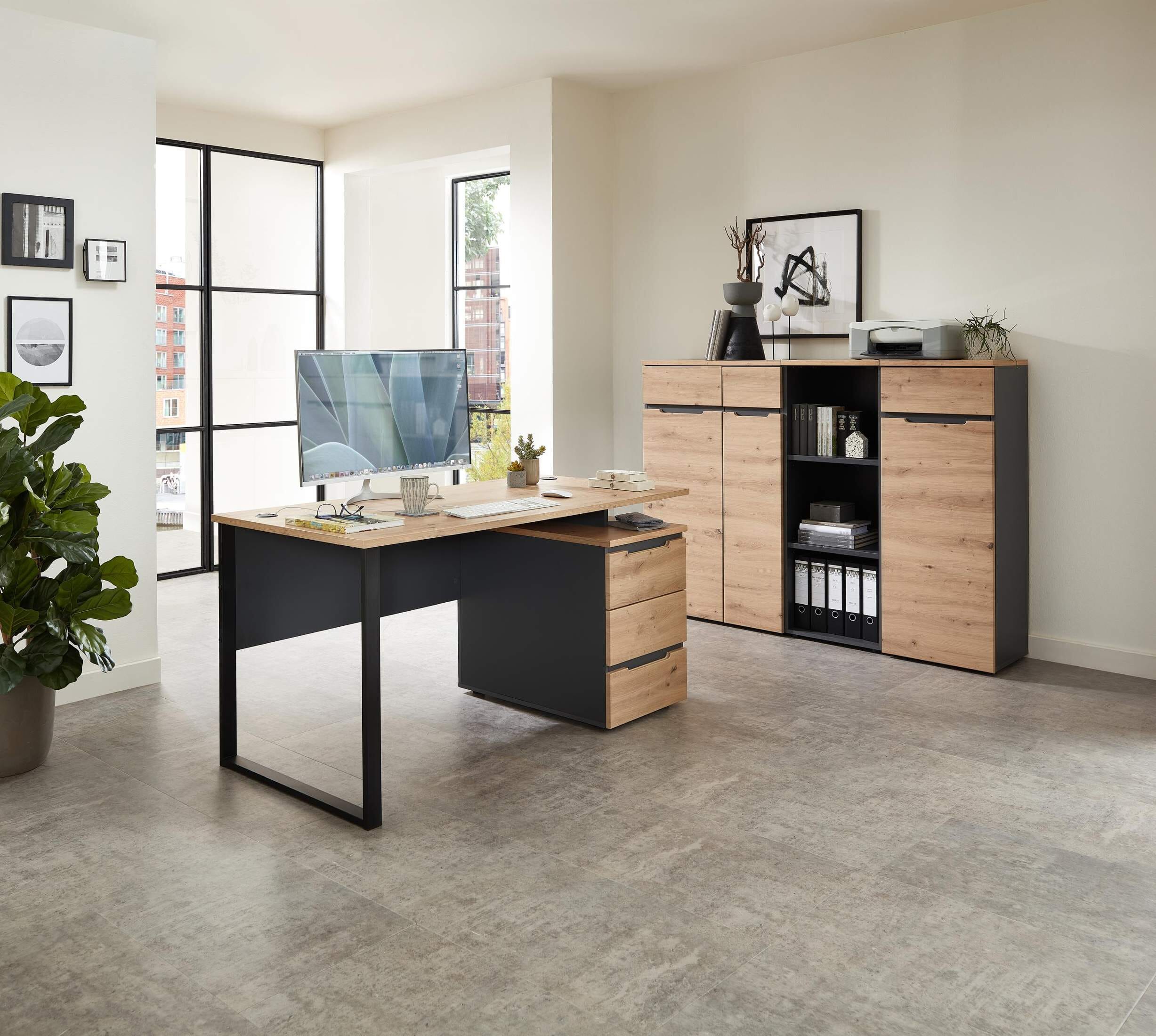 Der halbhohe Büroschrank MEMPHIS mit Fronten in Artisan Eiche Nachbildung und Korpus in Graphit ist ein absolutes Highlight für Ihr Büro, die Farbgebung wirkt modern und natürlich zugleich.