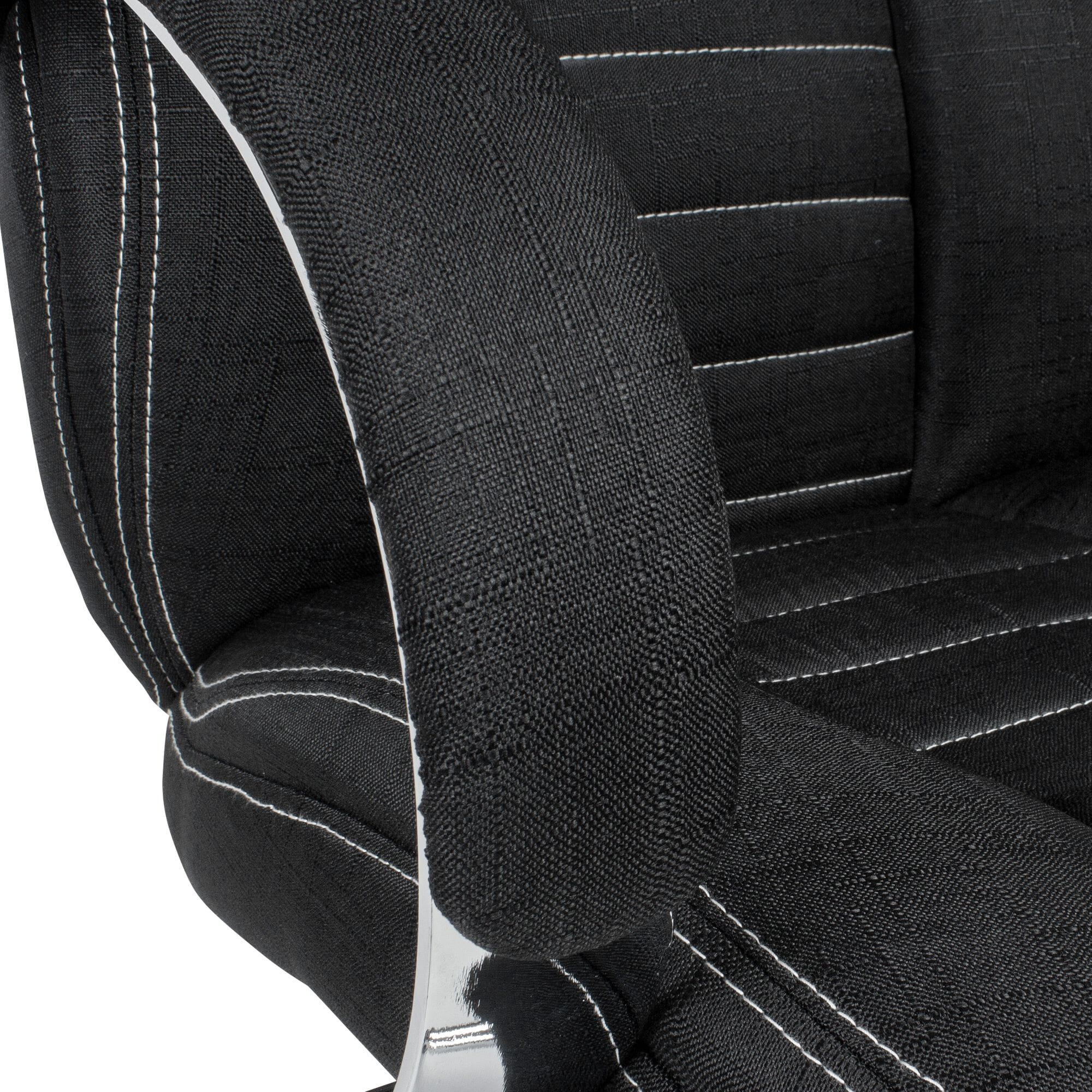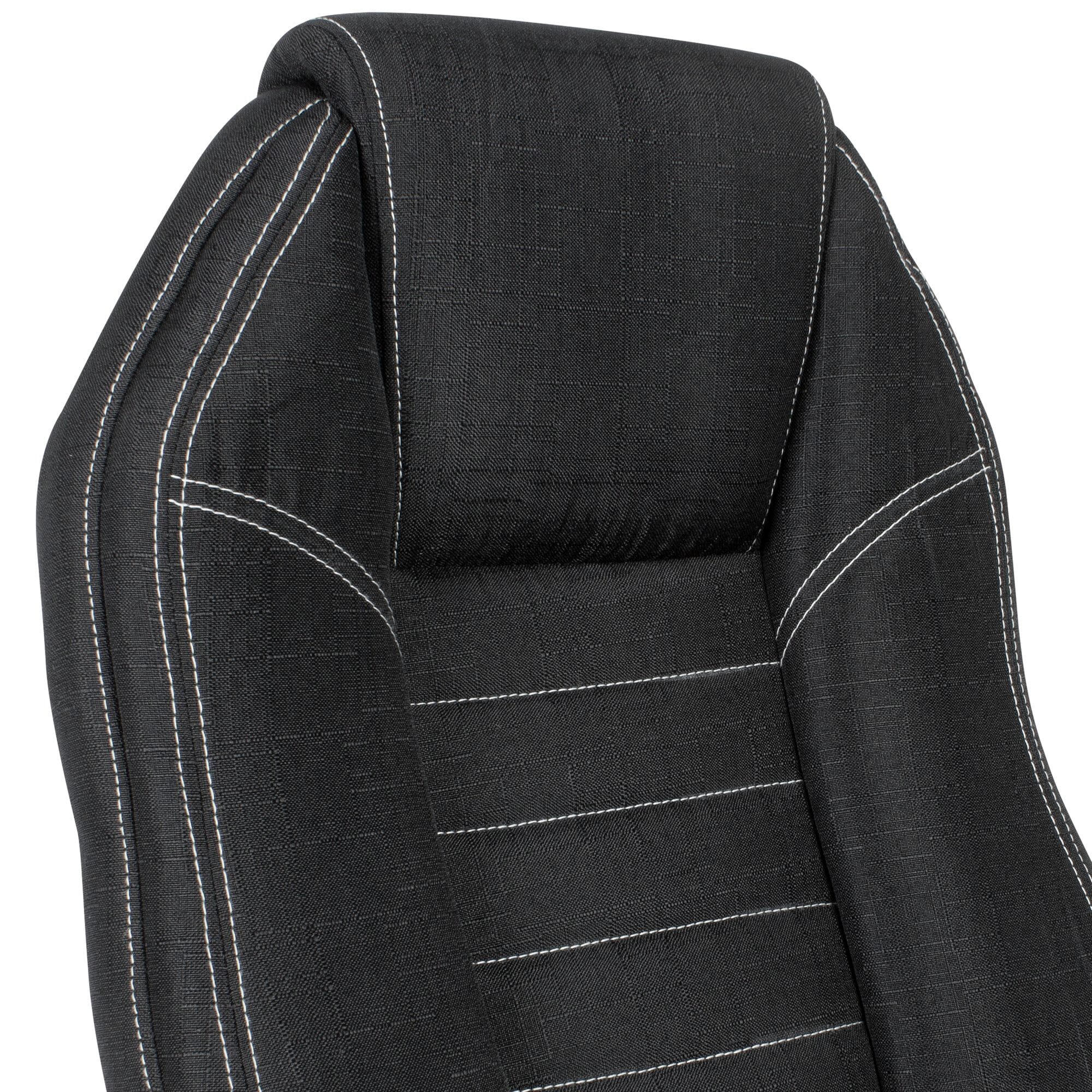 - Weiße Kontrastnähte runden das Design des schwarzen Bürostuhls perfekt ab