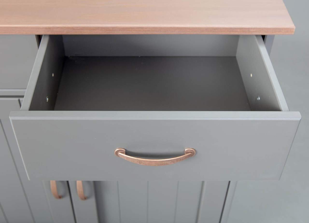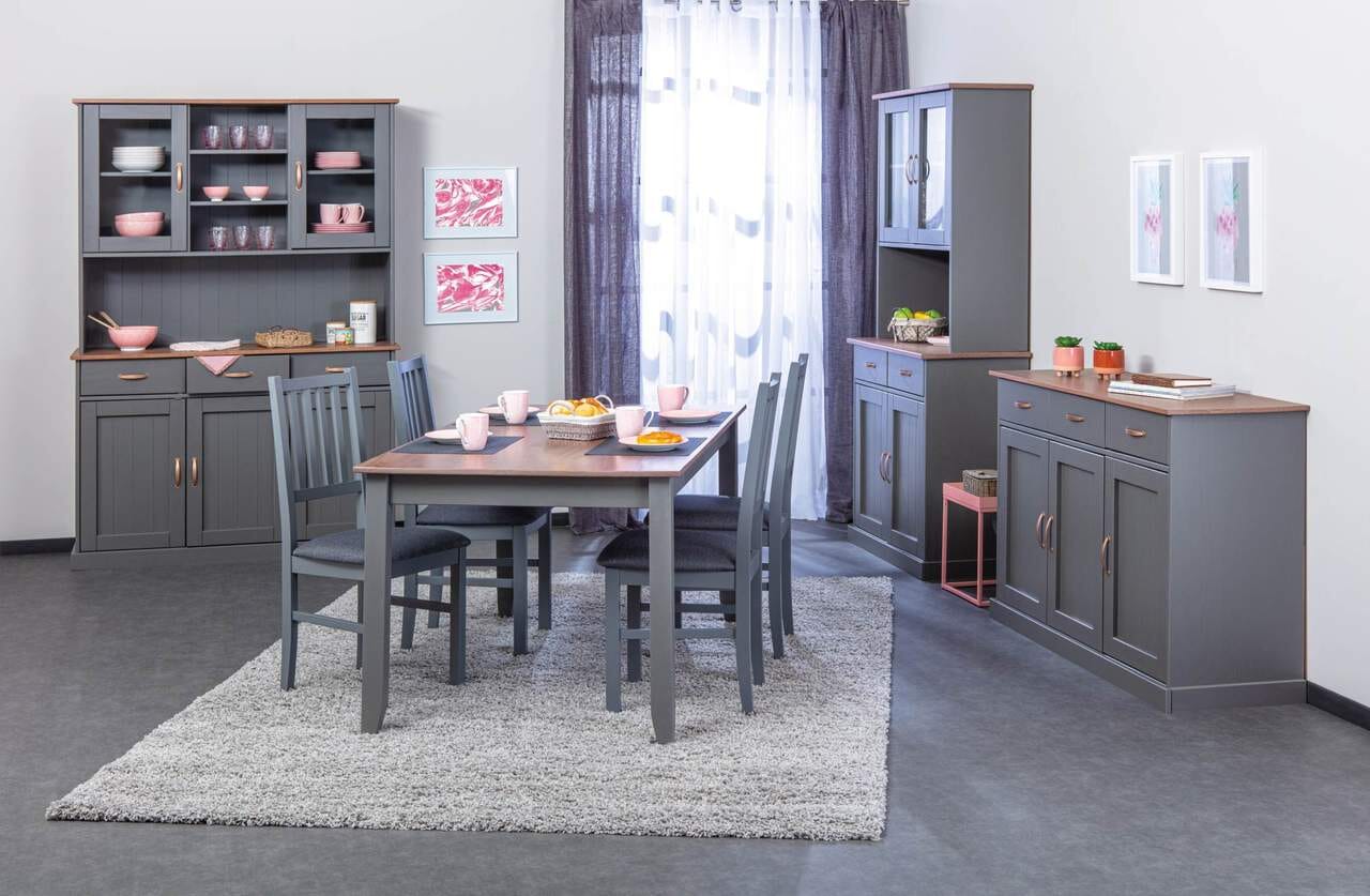 Hinzu kommt bei diesem Möbelstück im modernen Landhausstil aber auch das gute Material, Kiefer Massivholz. Die Oberfläche wurde noch mit angesagtem grauen Lack veredelt und damit auch ein Stück unempfindlicher gemacht.
